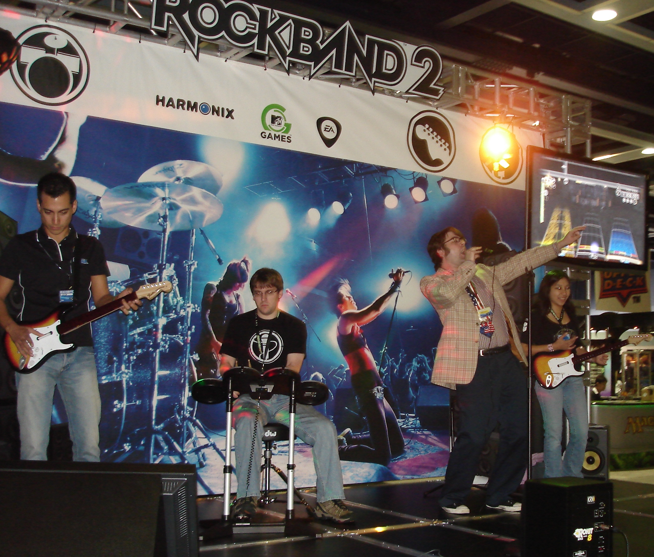 하모닉스는 ''기타 히어로''에 이어 역시 10억 달러 이상의 수익을 올린 ''록 밴드'' 프랜차이즈를 출시했다. ''록 밴드'' 타이틀은 여러 악기 컨트롤러와 협력 멀티플레이어를 지원하여 플레이어가 풀 밴드로 플레이할 수 있도록 했다.[35] ''기타 히어로'' 프랜차이즈는 밴드 중심의 네버소프트 개발 작품인 ''기타 히어로 월드 투어''를 통해 이를 따랐다.[36] 메탈리카와 에어로스미스와 같은 특정 밴드를 기반으로 한 ''기타 히어로'' 작품들도 출시되었다.[37]