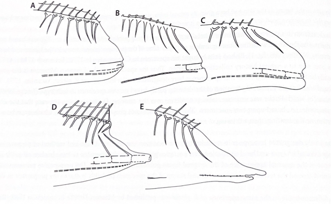 표준 몸 길이의 약 1/4[1] | 표준 몸 길이의 약 1/3[1] | ||