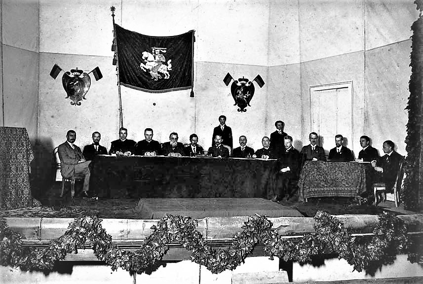 19세기 말, 유럽 각국의 민족주의 고조와 함께 러시아 제국 지배하의 리투아니아에서도 독립 열망과 함께 국기 제정 움직임이 일어났다. 1917년 빌뉴스 회의에서 국기 논의가 다시 이루어졌고, 요나스 바사나비추스, 안타나스 주무이지나비추스, 타다스 다우기르다스로 구성된 특별 위원회가 국기 디자인을 결정했다. 1918년 리투아니아 독립선언과 함께 노랑, 초록, 빨강 삼색기가 국기로 채택되었다.