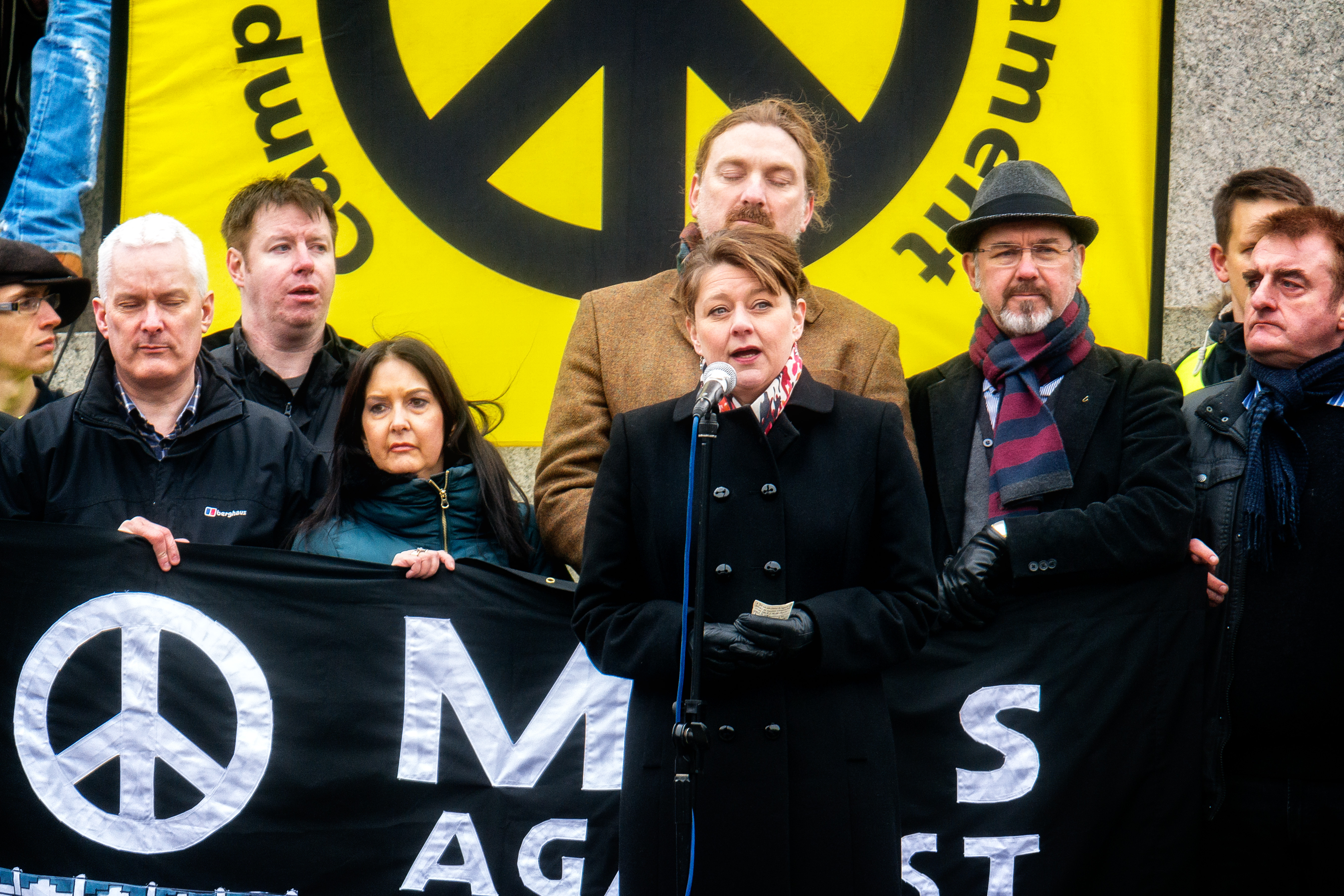 2016년 2월, 우드는 런던에서 열린 트라이던트(Trident) 반대 집회에 참여한 주요 영국 정치 지도자 중 한 명이었다. 이 행사에 앞서 우드가 집회 참가자 중 다른 두 명인 녹색당 의원 캐롤라인 루카스와 스코틀랜드 국민당 대표이자 의원 니콜라 스터전과 함께 공동 집필한 기사에서 그들은 "핵무기 없는 영국"을 위해 행진할 것이라고 밝혔다.[47] 이 행진에는 당시 노동당 대표 제러미 코빈도 참여했다.[48] 우드는 트라이던트 교체에 대한 웨스트민스터의 지원을 비판했는데, 이는 평생 1조파운드가 넘는 비용이 소요될 것이라고 지적했다. 그녀는 이 돈이 병원과 학교와 같은 새롭고 개선된 공공 시설에 사용되는 것이 훨씬 더 낫다고 말했다.[49] 집회 중 우드는 다음과 같이 말했다.