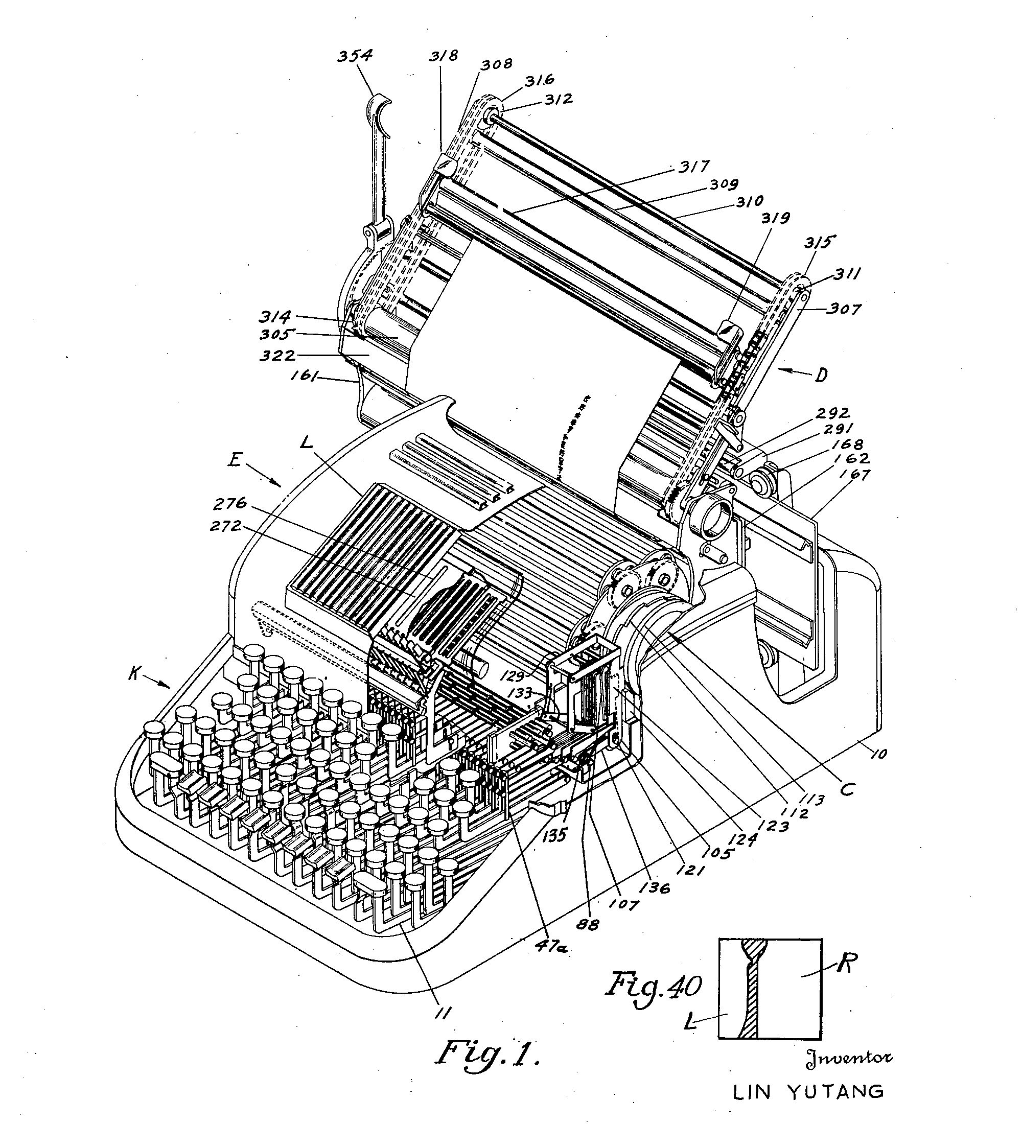 린위탕은 저술 활동 외에도 기계 발명에 관심을 보였다. 수천 자에 달하는 한자 때문에 현대 인쇄 기술 도입이 어려웠던 중국어의 문제를 해결하기 위해 수십 년간 연구한 끝에, 전쟁 중 실용적인 중국어 타자기인 '밍콰이'(明快|명쾌중국어)를 개발했다. 이 타자기는 한자 자체 대신 부수나 획을 입력하는 방식으로 키 수를 줄인 혁신적인 설계였으며, 훗날 냉전 시대 기계 번역 연구에도 영향을 미쳤다.[12]
