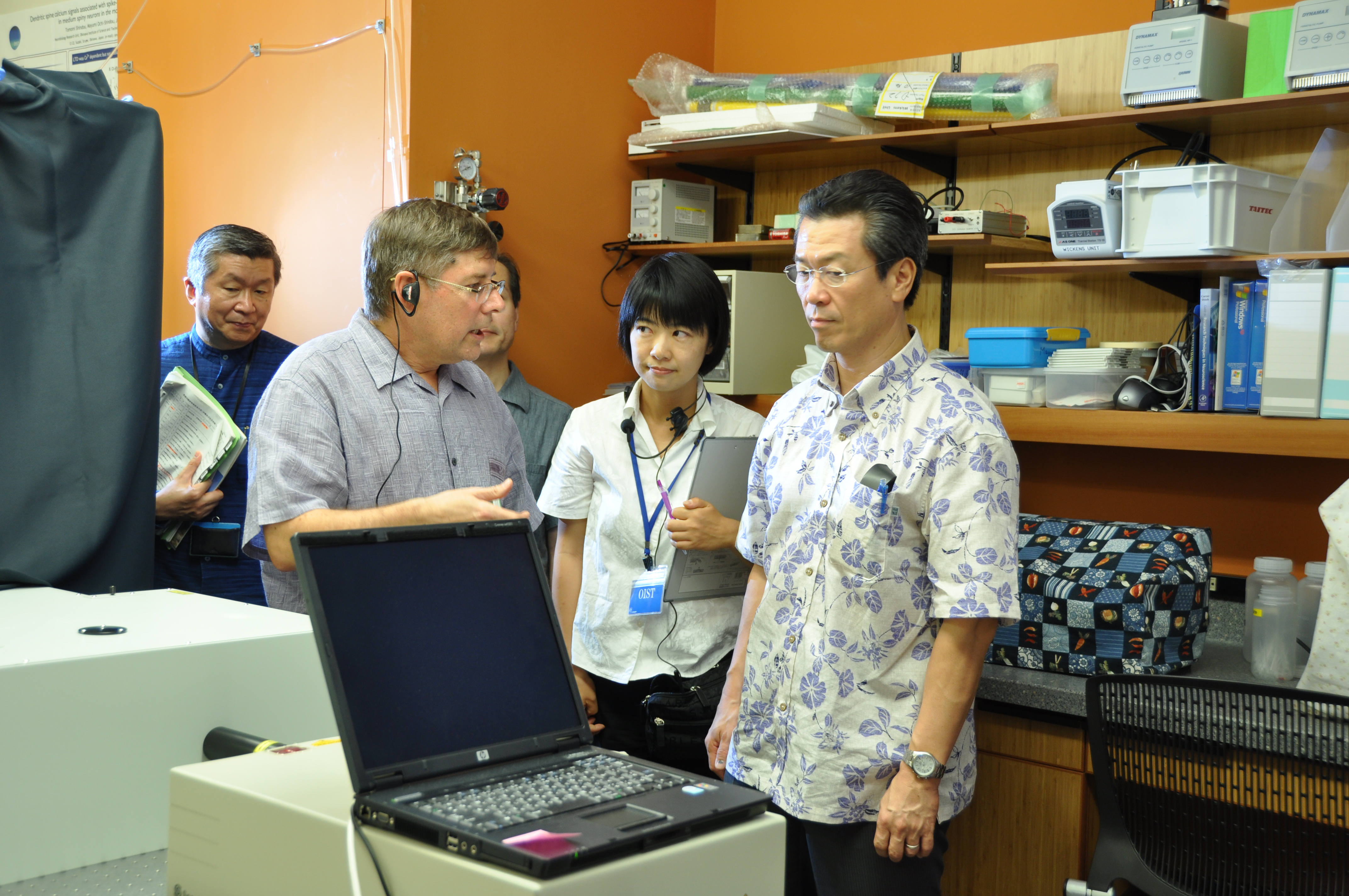 마부치 스미오(오른쪽)가 2010년 오키나와 과학기술대학원대학교를 방문하다
