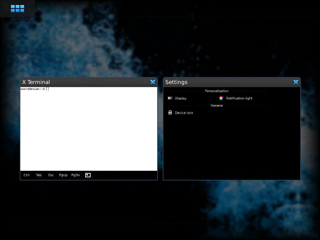 - 대시보드: 화면 왼쪽 상단 아이콘을 통해 접근할 수 있으며, 애플의 Mac OS X에 있는 Exposé 기능과 유사하게 현재 실행 중인 모든 애플리케이션을 미리 보기 형태로 보여준다.[14][15] 사용자는 미리 보기 창을 탭하여 앱을 전체 화면으로 전환하거나, 미리 보기 창 우측 상단의 'X' 표시를 탭하여 앱을 종료할 수 있다.