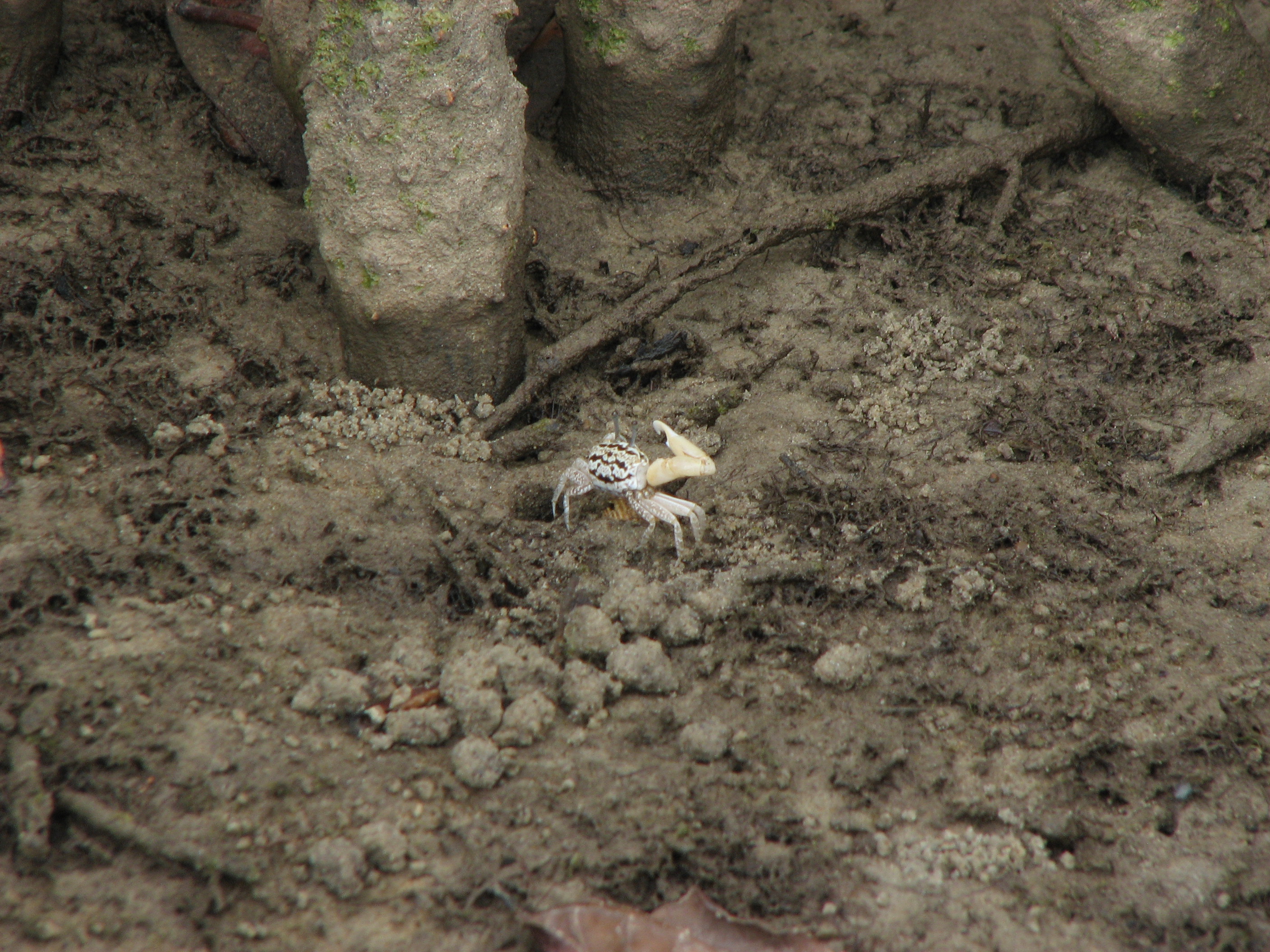 맹그로브 뿌리의 복잡한 그물에서 발견되는 독특한 생태계는 어린 유기체에게 조용한 해양 서식지를 제공한다.[51] 뿌리가 영구적으로 잠긴 지역에서는 조류, 따개비, 굴, 해면, 그리고 이끼벌레가 서식하며, 이들은 모두 여과 섭식을 하는 동안 고정될 단단한 표면이 필요하다. 새우와 갯가재는 진흙 바닥을 서식지로 이용한다.[52] 맹그로브 게는 맹그로브 잎을 먹고 다른 저서 생물을 위한 맹갈 진흙에 영양분을 추가한다.[53] 적어도 일부 경우에는 맹그로브에서 고정된 탄소의 수출이 연안 먹이 그물에서 중요하다.[54]