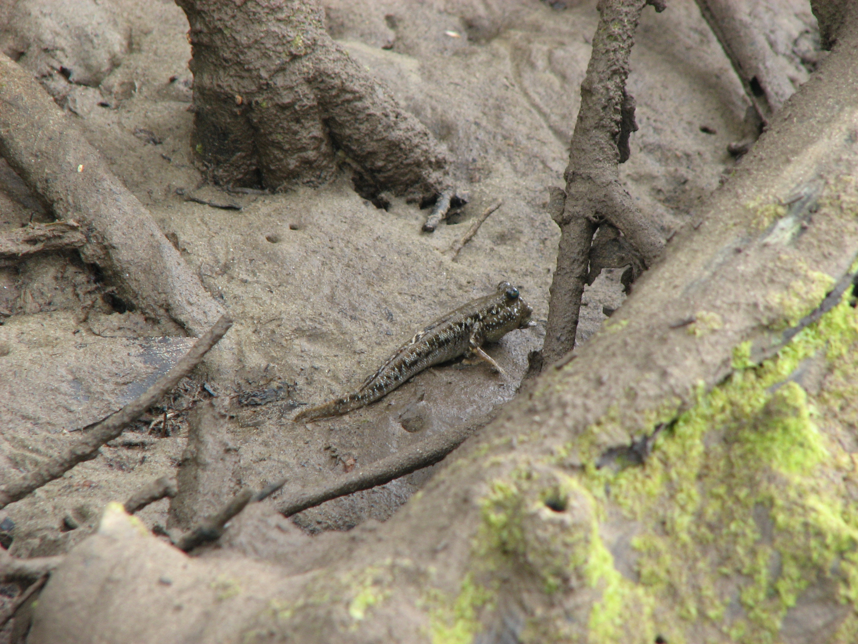 어류에서는, 갯벌이나 호흡근 위에서 말뚝망둥어 등의 망둑어류가 활동하고, 밀물이 되면 다른 많은 바닷물고기도 들어온다. 나무의 호흡근이 복잡하게 얽혀 있는 맹그로브 지역은 몸을 숨기기에 편리하며, 놀래기류와 망둑어류 등 많은 작은 물고기가 보이고, 더 나아가 그것들을 포식하는 농어류와 뱀장어 등의 대형 어류도 있다.