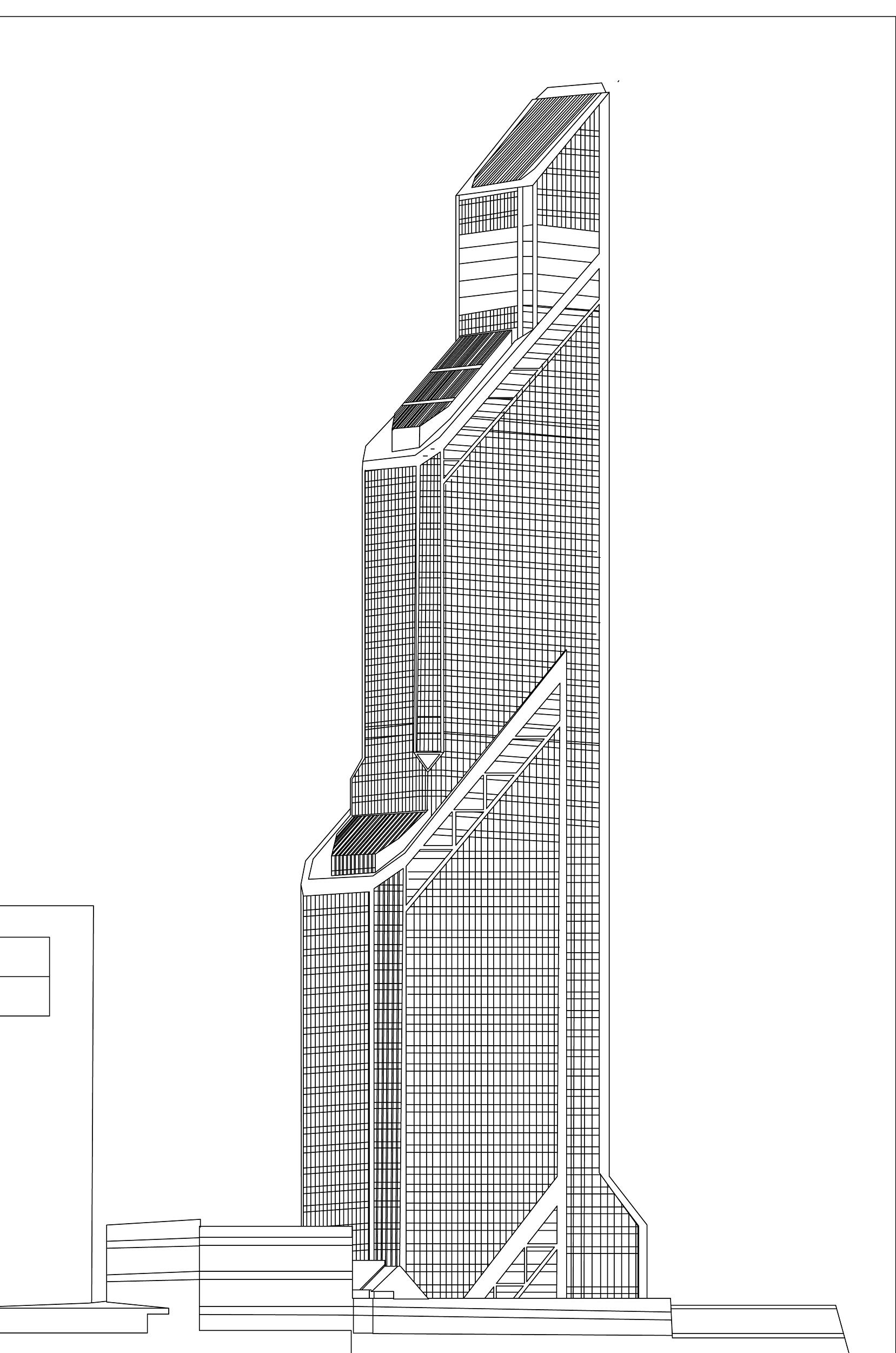 업무 시설, 아파트, 소매점, 레스토랑, 피트니스 센터, 회의실, 주차 공간 등이 있는 복합 개발 건물이다.[5][6] 아파트는 건물 최상층에 위치하며, 여러 호실을 합쳐 사용할 수 있도록 설계되어 공간 효율성을 높였다.[9]이 건물에는 총 29대의 엘리베이터가 있으며, 그중 2대는 최대 속도 7m/s의 고속 엘리베이터이다. 20대는 승객용, 9대는 서비스용 엘리베이터이다. 승객용 엘리베이터 10대는 트윈 시스템(TWIN system)으로 운영된다.[6]