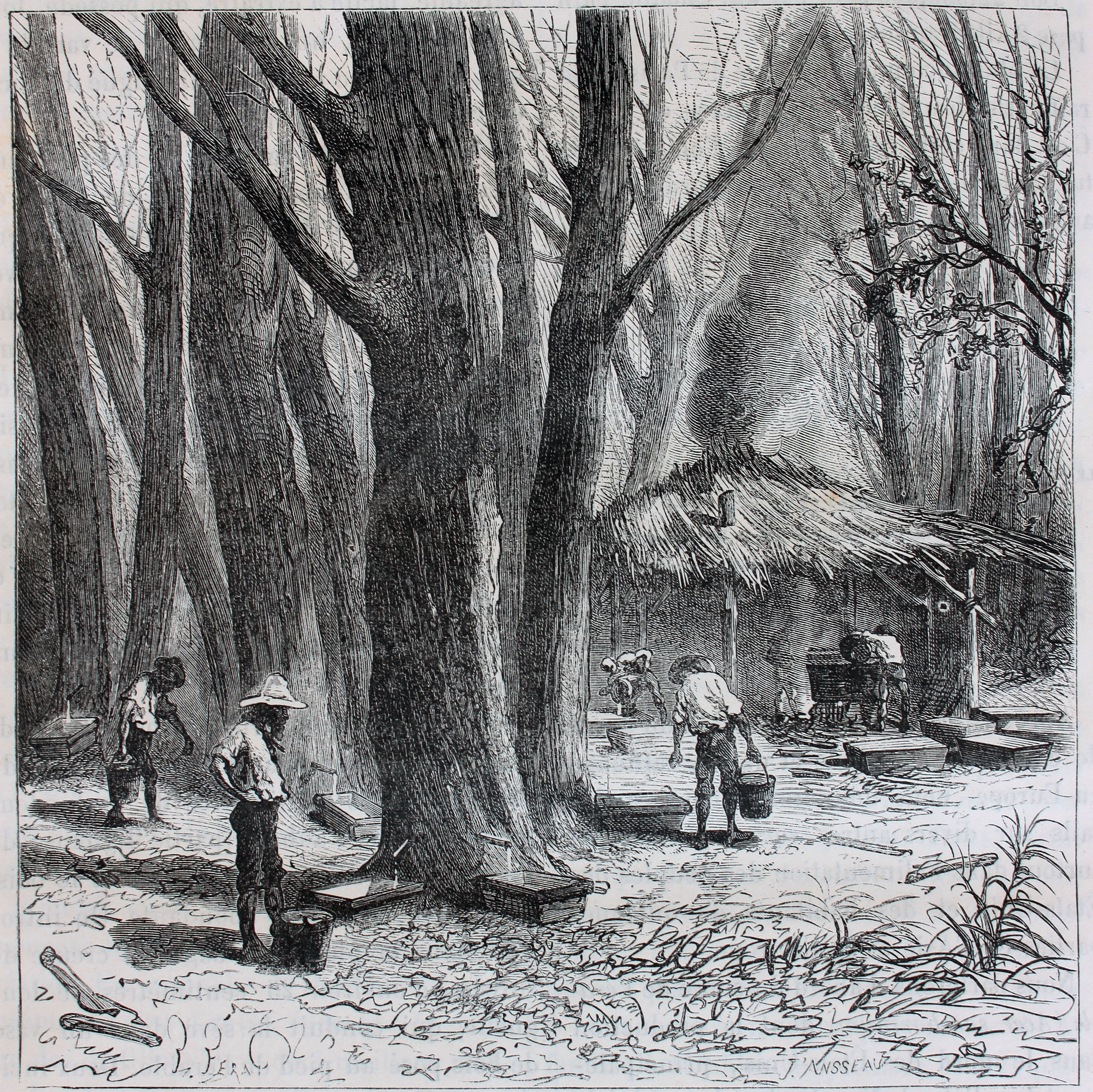 단풍나무 설탕 채취는 봄 해빙기에 단풍나무가 많은 삼림 지역에서 시작되었다. 수액 채취자들은 나무에 구멍을 뚫고 나무 마개를 꽂은 후, 나무 양동이를 걸어 수액을 모았다. 수액은 썰매나 짐승이 끄는 마차로 운반되었고, 끓이는 과정을 통해 농축되었다.[22]
