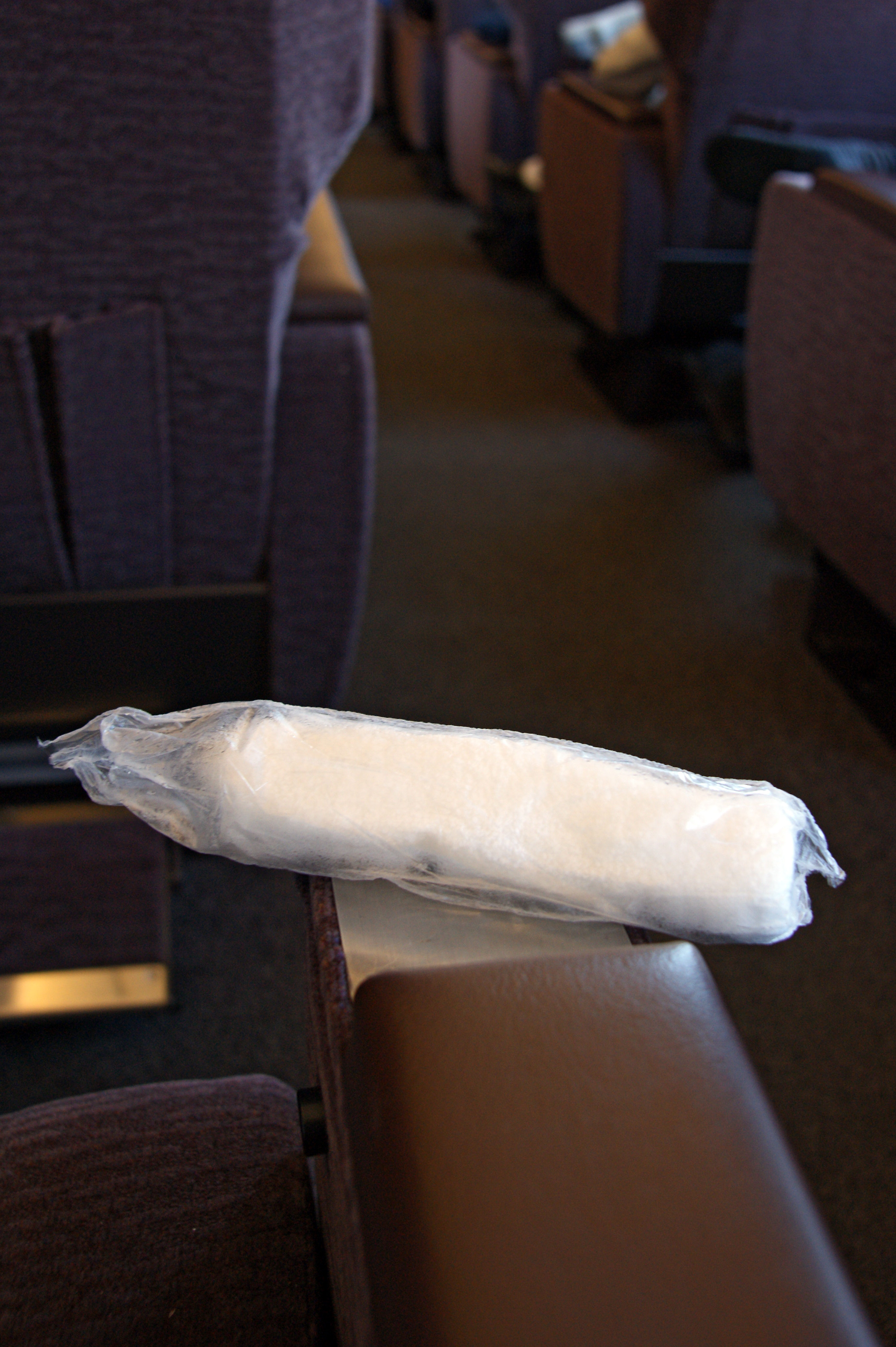 1959년부터 일본항공은 국제선에서 이륙 전 탑승객에게 물수건을 제공하기 시작했다. 이 서비스는 다른 항공사에도 퍼져나가 국제선에서 뜨거운 물수건을 제공하는 것이 일반화되었다.