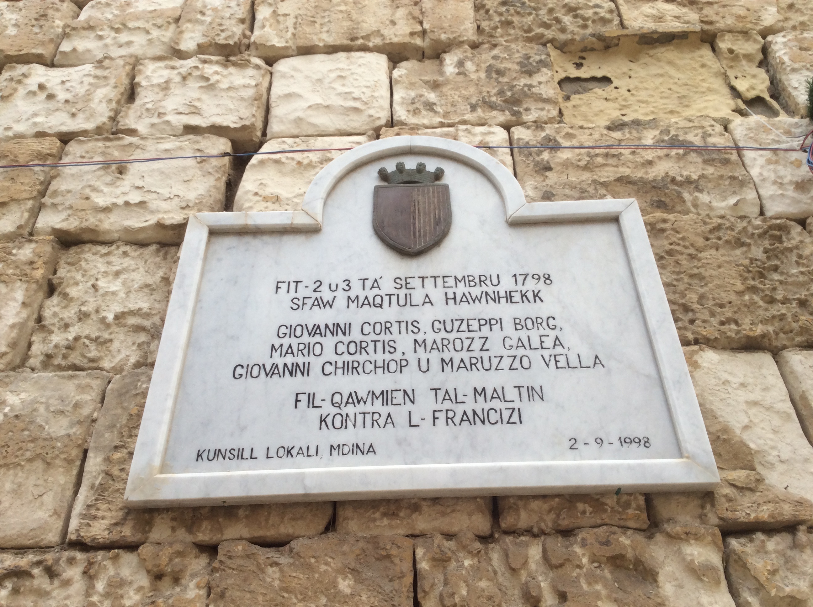 1798년 6월 10일, 므디나는 프랑스의 몰타 침공 당시 별다른 저항 없이 프랑스군에 의해 점령되었다.[30] 프랑스 수비대가 도시에 주둔했지만, 그해 9월 2일 몰타인 봉기가 일어났다. 다음 날, 반군은 비밀 통로를 통해 도시에 진입하여 65명의 수비대를 학살했다.[31] 이 사건은 2년간의 봉기와 봉쇄의 시작을 알렸고, 몰타인들은 므디나의 반카 주라탈레에서 회의를 열었던 국민 의회를 설립했다.[32] 반군은 성공했고, 1800년 프랑스는 항복했으며 몰타는 영국 보호령이 되었다.[25]