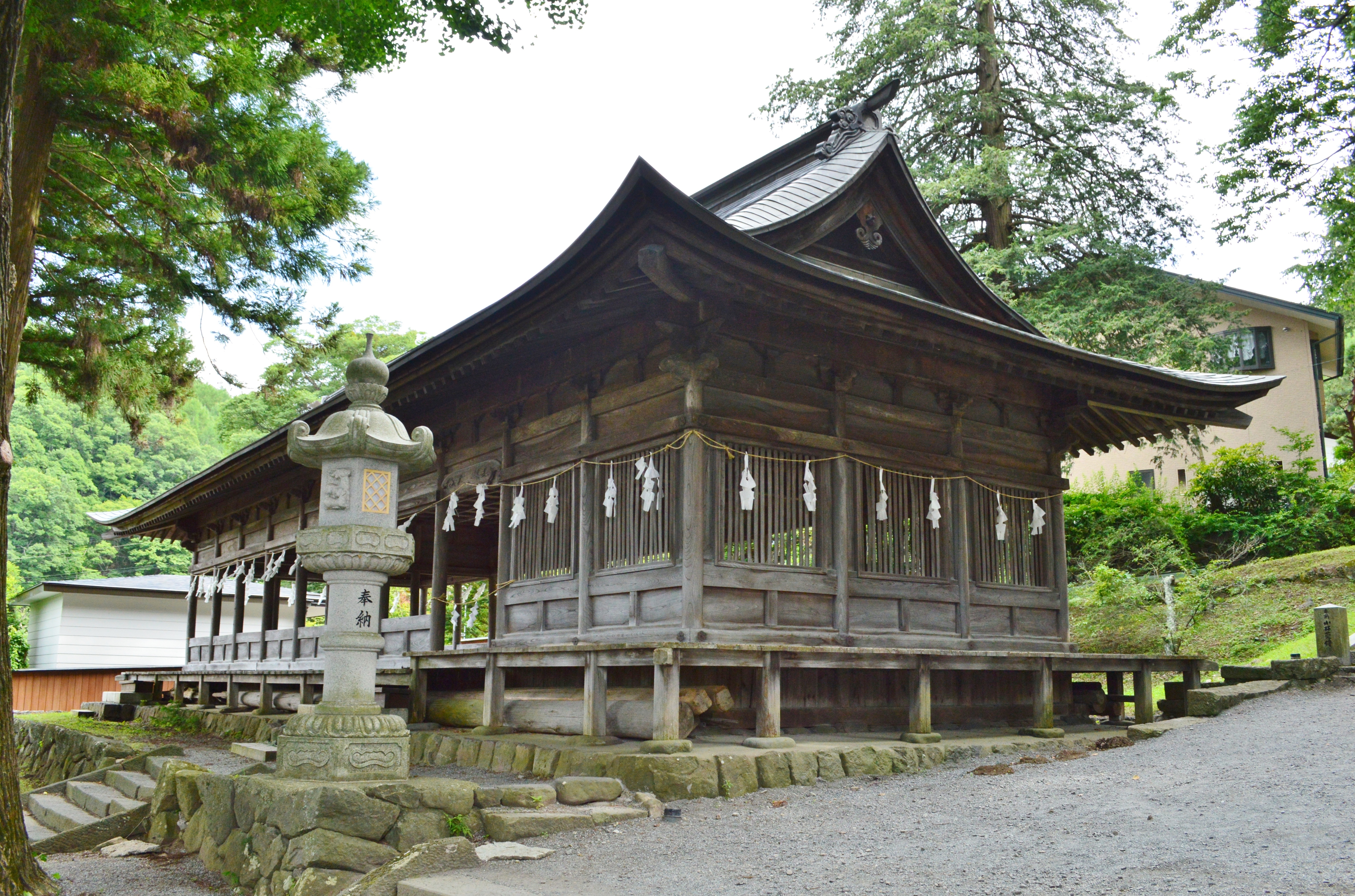 고바라(神原) 일대는 옛날부터 제사의 중심지였기 때문에, 미샤구지(ミシャグジ)와 깊은 관련이 있다고 할 수 있다. 가테이 3년(1237년)의 『제신권청단(諸神勧請段)』에 기록된 신락가(神楽歌)로부터 마에미야(前宮)에는 옛날에는 "스무(二十)의 미샤구지(ミシャグジ)"가 모셔져 있었다는 견해가 있다.[131][132]