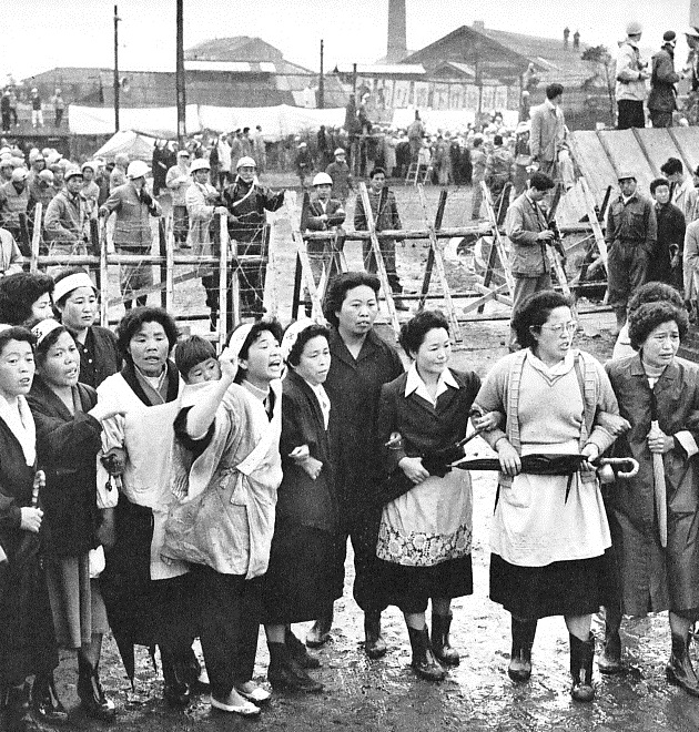 1959년, 미쓰이 광산은 경영 악화를 이유로 대규모 인원 감축을 추진했고, 노동조합은 이에 반발하여 무기한 파업에 돌입했다. 회사 측은 직장 폐쇄로 맞섰고, 총평 등의 지원을 받은 노조와 '총자본 대 총노동의 대결'이라 불릴 정도로 격렬하게 대립했다.