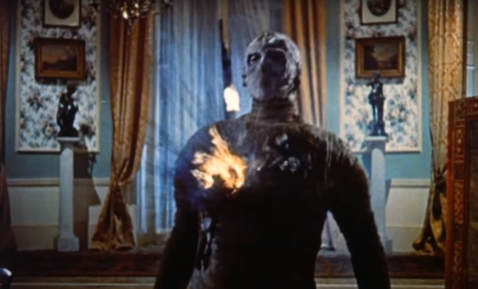 비디오 ''피와 살: 해머 호러의 유산(Flesh and Blood: The Hammer Heritage of Horror)''에서 피터 쿠싱은 자신이 미라에게 창을 꽂는 장면을 제안했다고 말한다.[6]