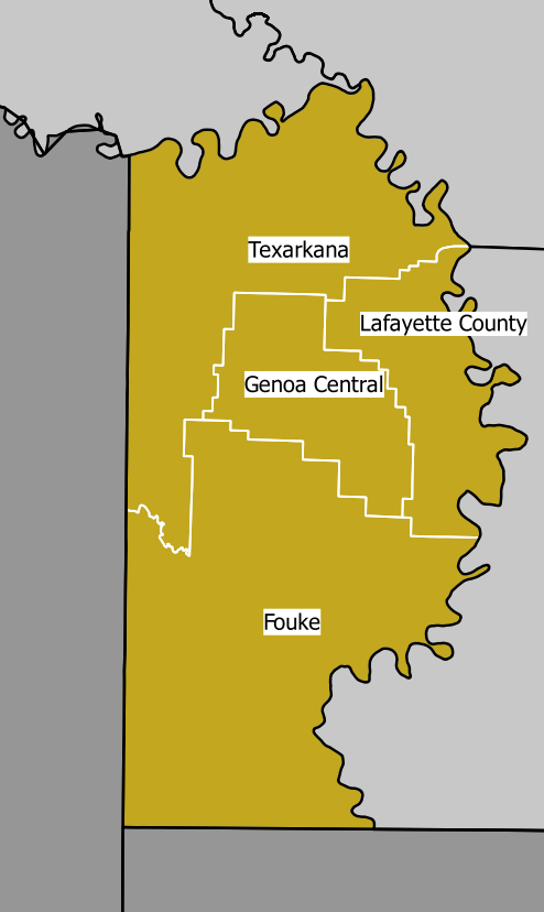현대 밀러군은 1874년 레드리버 서쪽과 남쪽에 위치한 라피엣군 일부를 재조직하여 설립되었다.[63] 밀러군은 1820년에 설립되었으며, 당시에는 현재의 군역 외에도 텍사스주의 보위군, 레드리버군, 라마군, 패닌군, 카스군, 모리스군, 타이터스군, 프랭클린군, 홉킨스군, 델타군, 헌트군까지 포함하고 있었다.