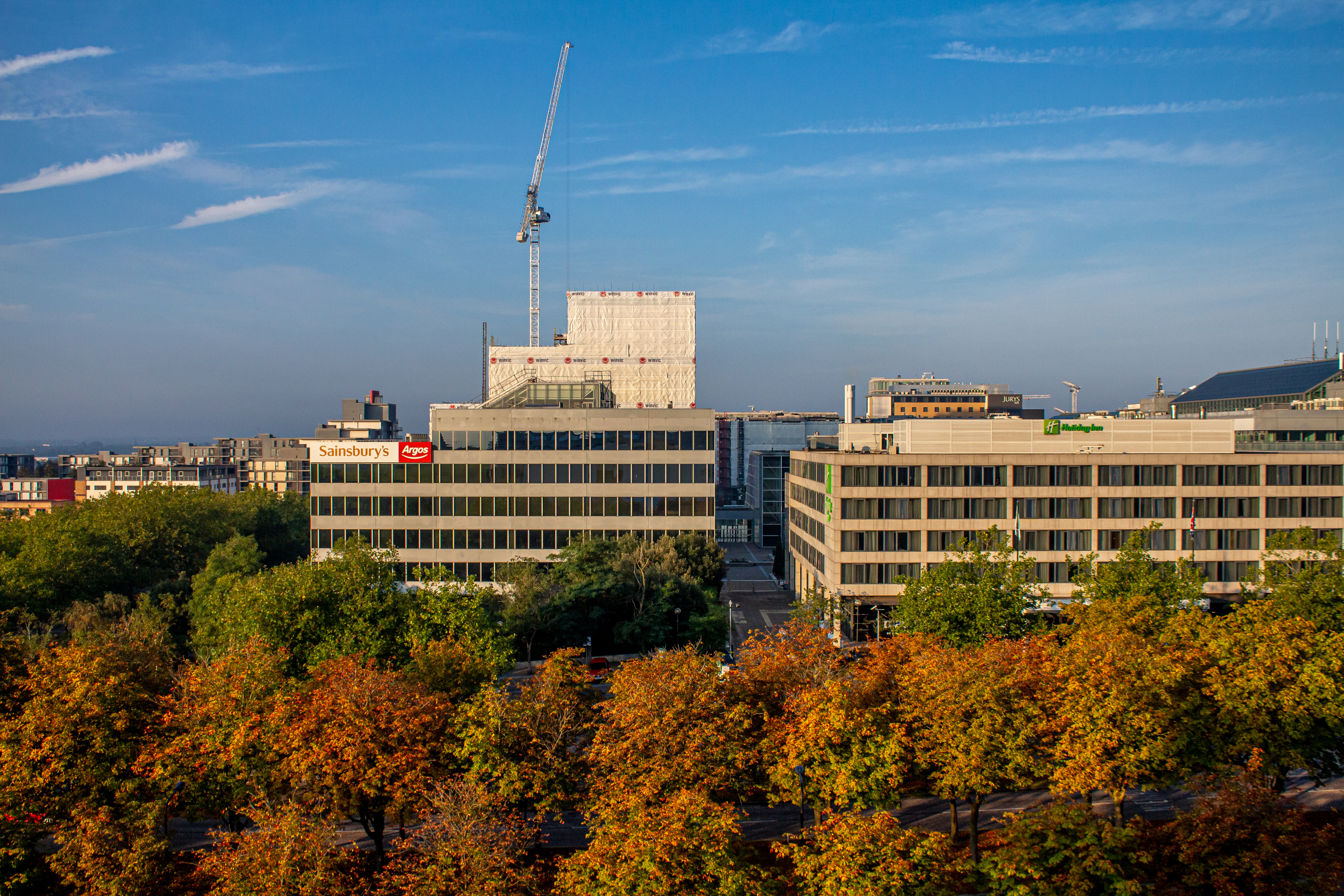 도시에서 가장 높은 건물은 2022년 4월에 개장한 14층, 높이 50m의 호텔 라 투어이다.[58] 이 호텔은 캠벨 공원과 CMK를 내려다보고 있다.[51] 네트워크 레일 국립 센터는 중앙역 근처 실버리 대로의 서쪽 경계에 위치해 있으며, 6층 높이에 해당한다.[57]