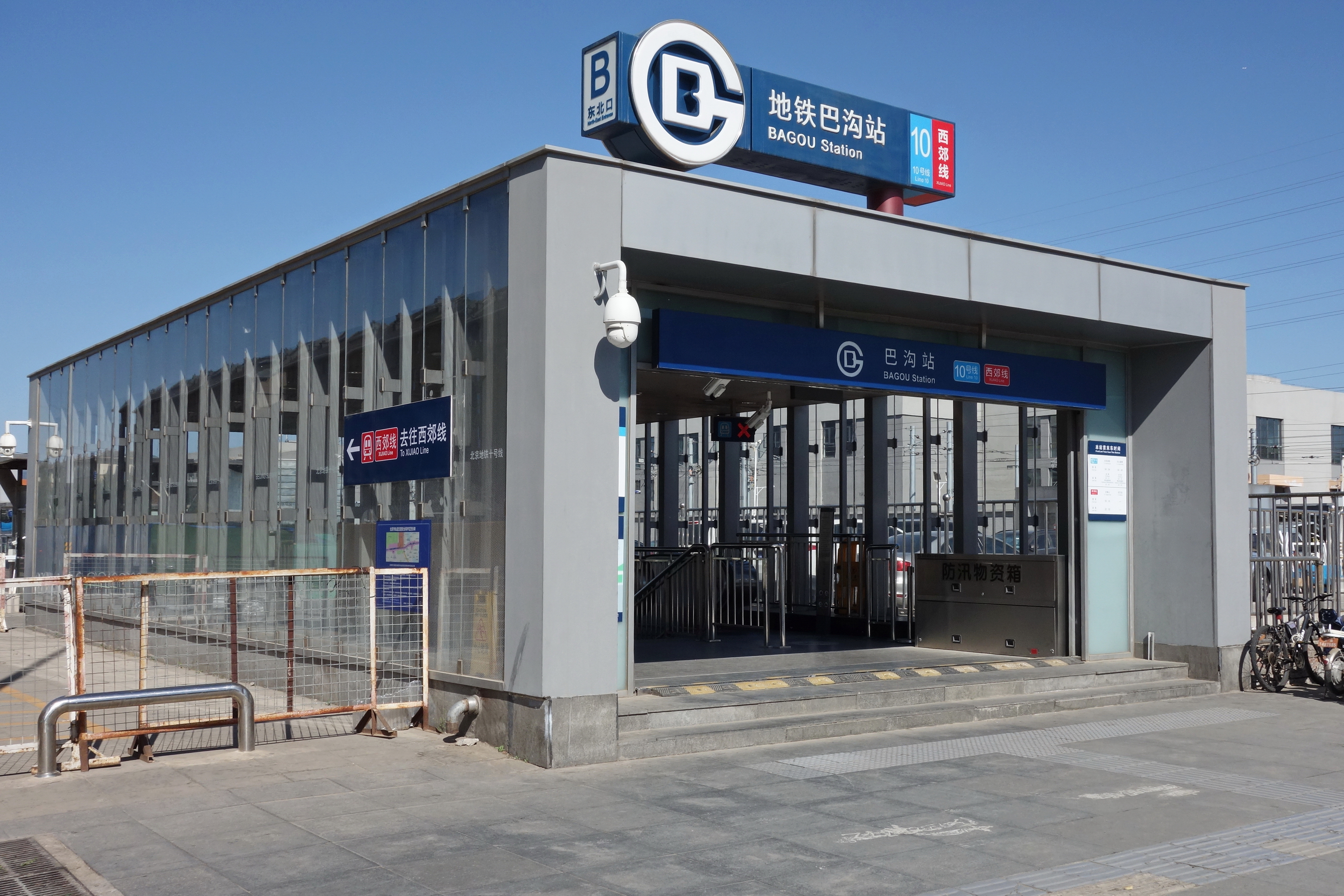 시자오선 바거우역은 당초 지상역으로 계획되었다. 시자오선은 계획된 남북 수로 공원의 동쪽에서 시작하여 란뎬창 북로, 쿤위강 및 북4환서로(훠치잉교) 뒤쪽 가장자리인 바거우로 북쪽 끝에서 바거우 역으로 연결된다. 시자오선은 1면 1선의 단선 승강장 구조이다.[3] 승강장 서쪽에는 열차 회차를 위한 건넘선이 있고, 동쪽 측면 선로는 바거우 차량단과 연결된다.