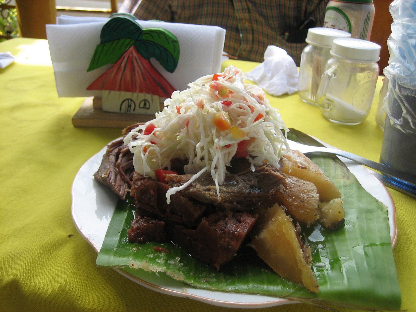 비고론은 니카라과의 전통 요리이다. 커티도(채 썬 양배추, 토마토, 양파, 식초와 소금에 절인 칠리 고추)라는 양배추 샐러드, 삶은 카사바, 치차론(껍질 또는 살코기가 있는 튀긴 돼지고기)으로 구성되며, 바나나 잎으로 싼다.[14] 코스타리카에서도 이와 비슷한 요리를 찾아볼 수 있다.바호는 고기, 녹색 요리용 바나나, 유카를 바나나 잎에 넣고 조리한 음식이다.