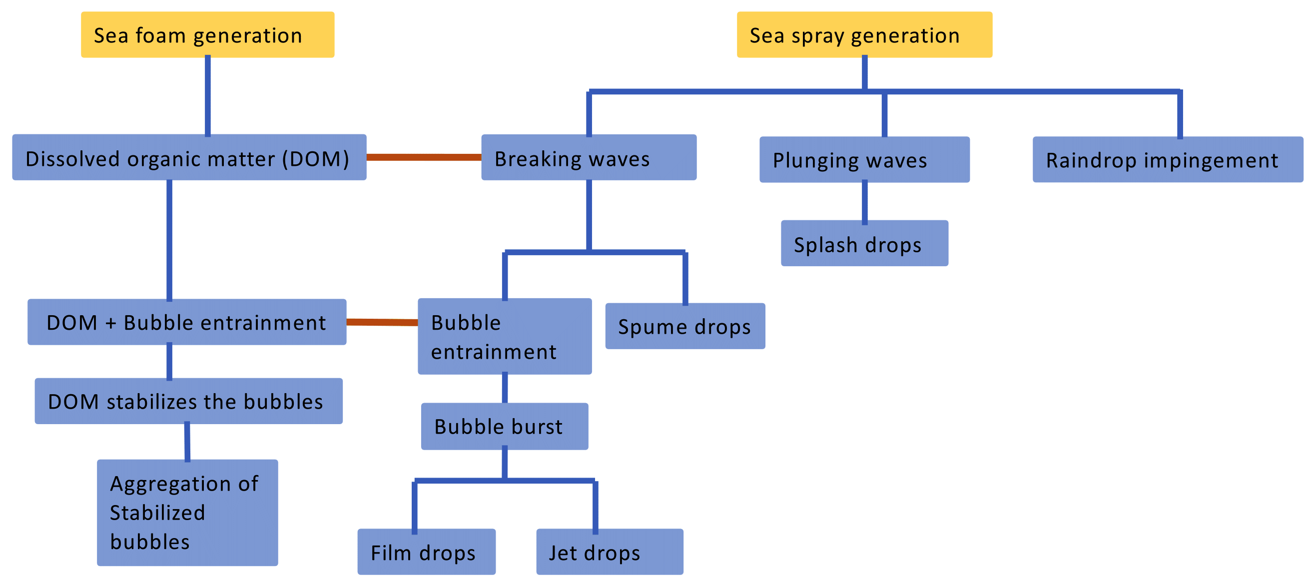 | 생성 메커니즘 | 파도의 쇄파, 바람에 의한 물보라 등 |