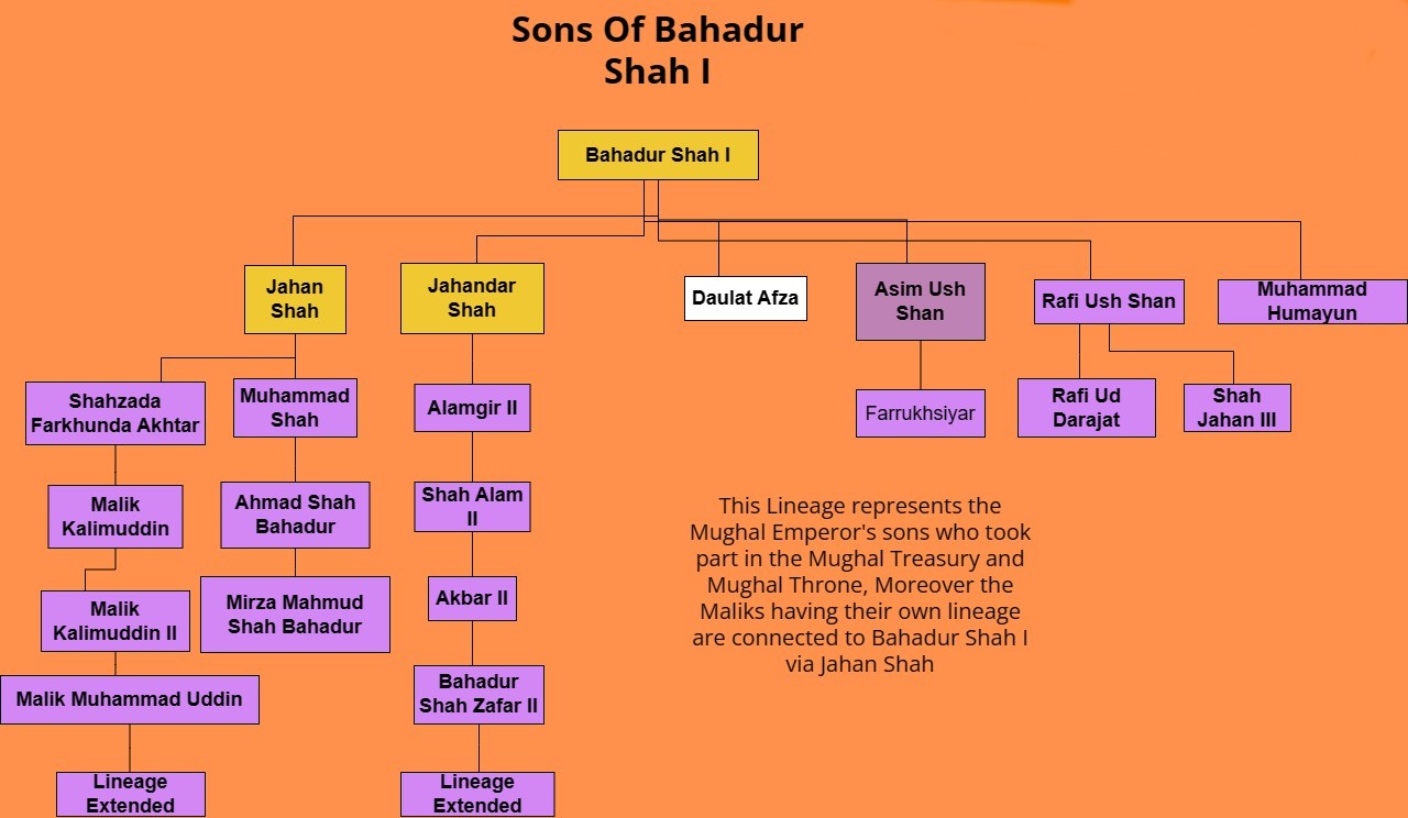 아래는 바하두르 샤 1세의 자녀들에 대한 상세 정보이다.