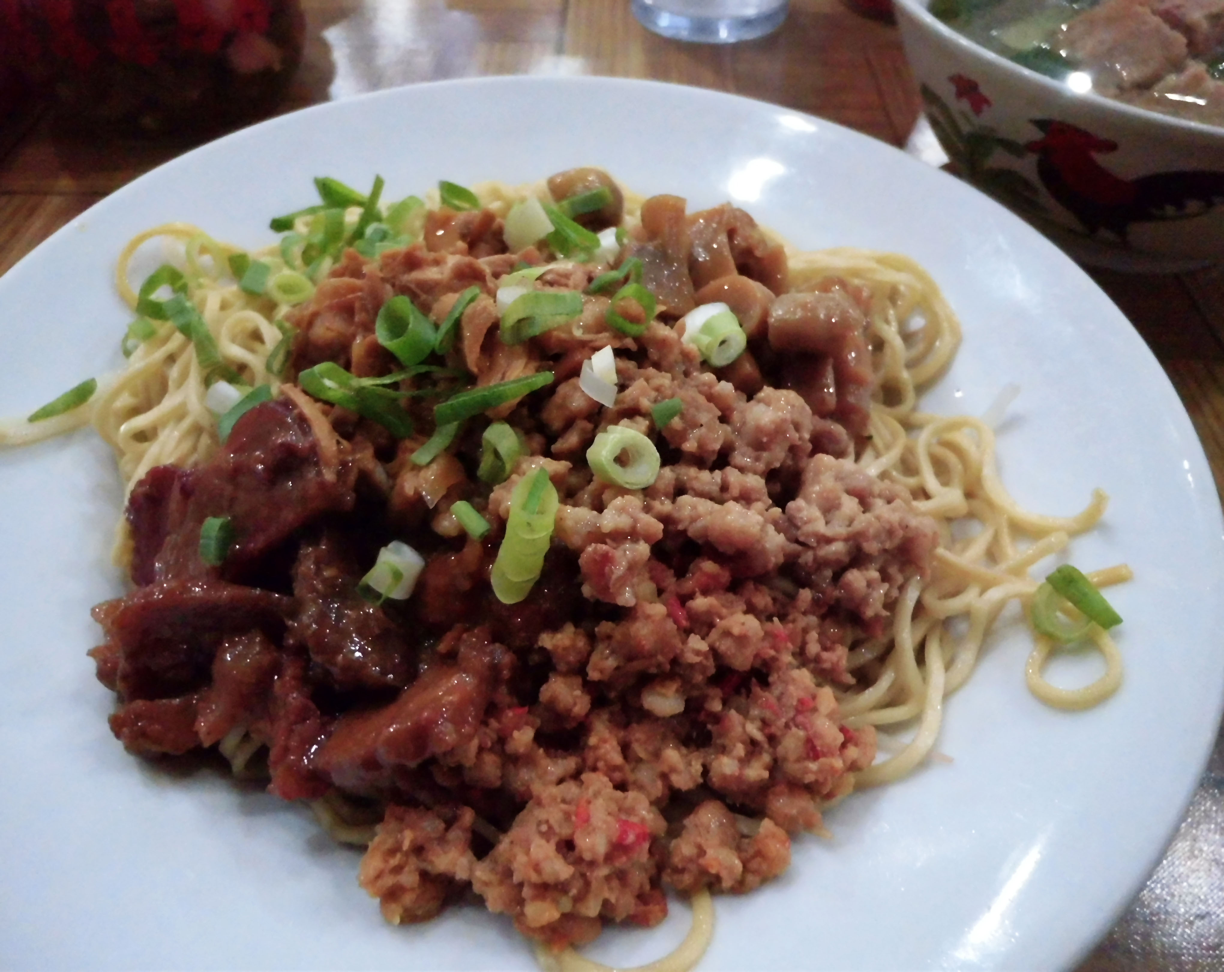 박미 방카 Bakmi Bangkaind | 방카 섬 (중국계 인도네시아 요리) | 다진 돼지고기(원형) 또는 닭고기(할랄), 조림 돼지고기, 버섯, 다진 파 고명.[9][10] |