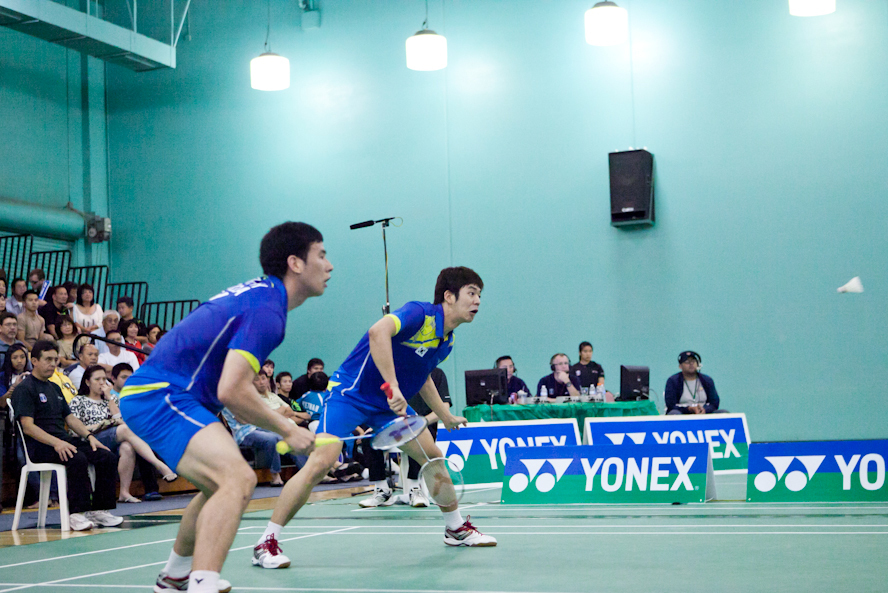 - '''뒷코트'''에서는 셔틀콕이 더 낮게 떨어지도록 내버려 두는 대신, 셔틀콕이 여전히 위에 있는 동안 치려고 노력한다. 이러한 ''오버헤드'' 히팅을 통해 스매시, ''클리어''(셔틀콕을 상대 코트의 뒤쪽으로 높이 치는 것), ''드롭 샷''(셔틀콕을 부드럽게 쳐서 상대 앞코트로 가파르게 아래로 떨어뜨리는 것)을 할 수 있다. 셔틀콕이 더 낮게 떨어졌다면 스매시는 불가능하며, 풀 스윙의 높은 클리어는 어렵다.