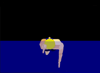 - 스타트: 물속에서 벽을 바라보고 시작하며, 손으로 출발대나 벽을 잡는다. 발은 어깨 너비로 벌리고, 발가락은 수면 위나 아래에 있을 수 있지만, 거터 가장자리 위나 안쪽으로 말려서는 안 된다.[2] 출발 신호와 함께 팔을 휘두르고 머리를 뒤로 젖히며 발로 벽을 밀어낸다.
