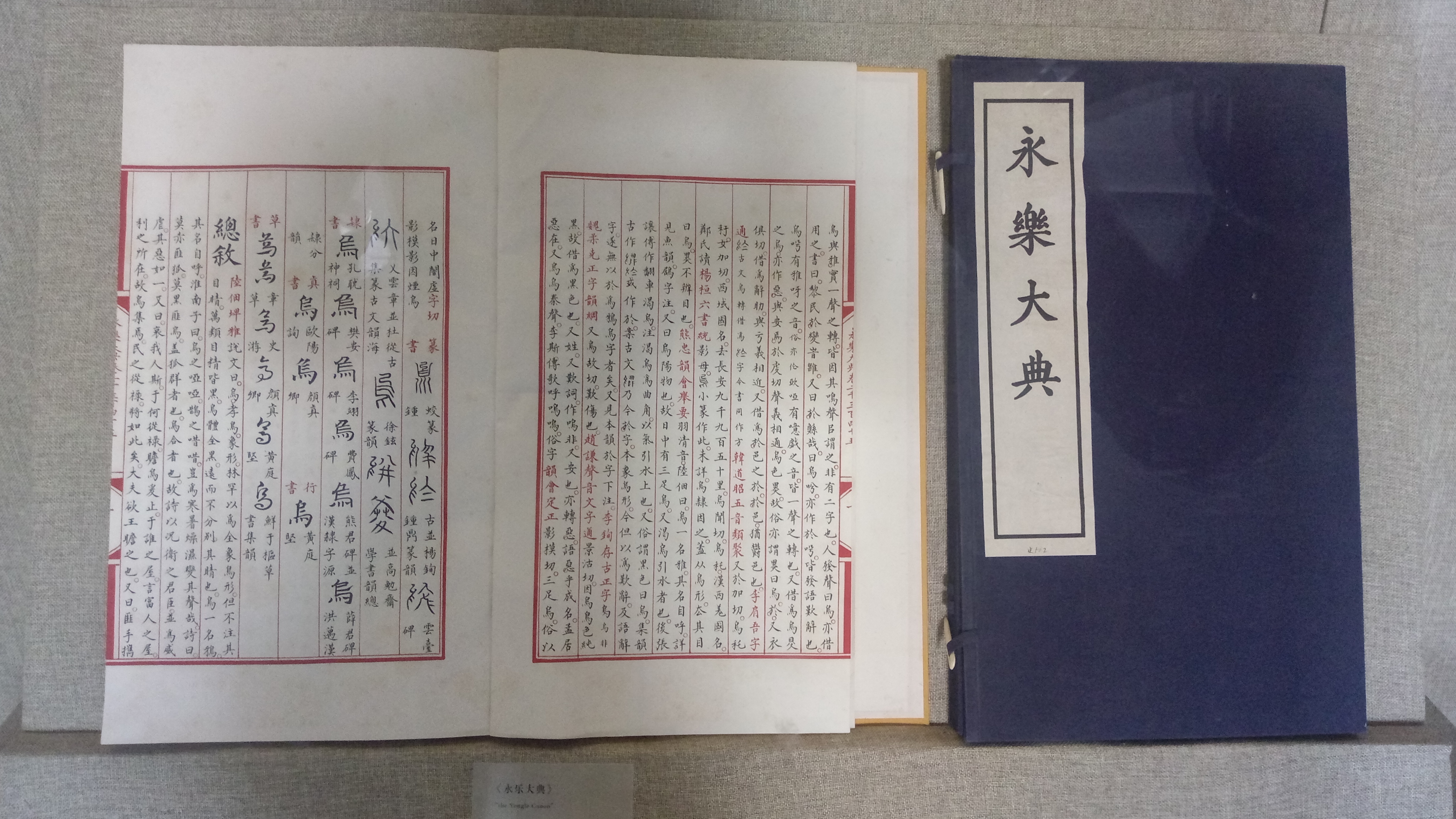 중국에서는 기원전 2세기의 참고 자료인 ''시변''이 계보 백과사전으로 묘사되었고, 220년대에 완성된 ''황란''은 초기 ''유서'' 백과사전이었다. 624년에 완성된 ''예문유취''는 초기 당나라의 문학 백과사전이었다. 11세기에 편찬된 ''송사사대서''는 4대 백과사전 중 마지막인 ''책부원구''가 1,000권에 940만 한자에 달했다. 영락대전 (1408년 완성)은 11,095권으로 구성되었다.