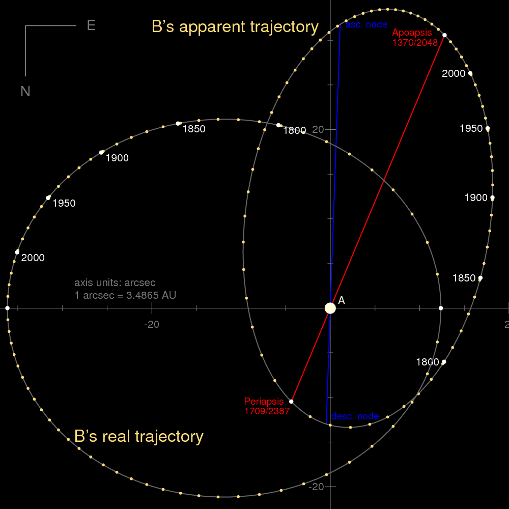 1830년 프리드리히 게오르그 빌헬름 폰 스트루베는 이 별이 쌍성임을 발견했지만, 이후 한동안 이 별이 단순히 천구상에서 붙어 있는 것처럼 보이는 별인지, 아니면 실제로 중력에 의해 묶인 쌍성계인지는 밝혀지지 않았다.[65]