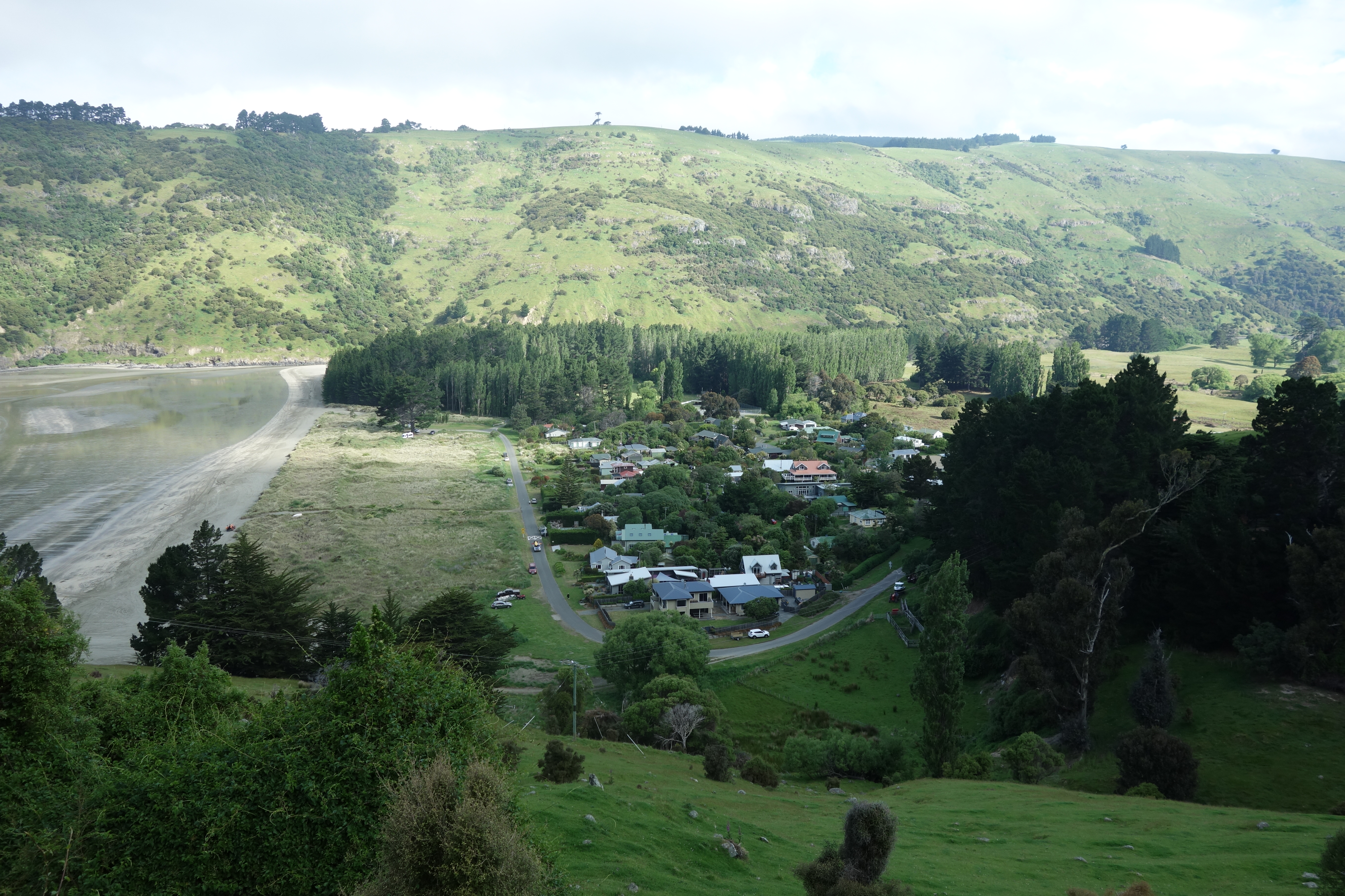 - 오카인스 베이(Okains Bay)에는 휴양 캠프장과 넓은 모래사장이 있다.