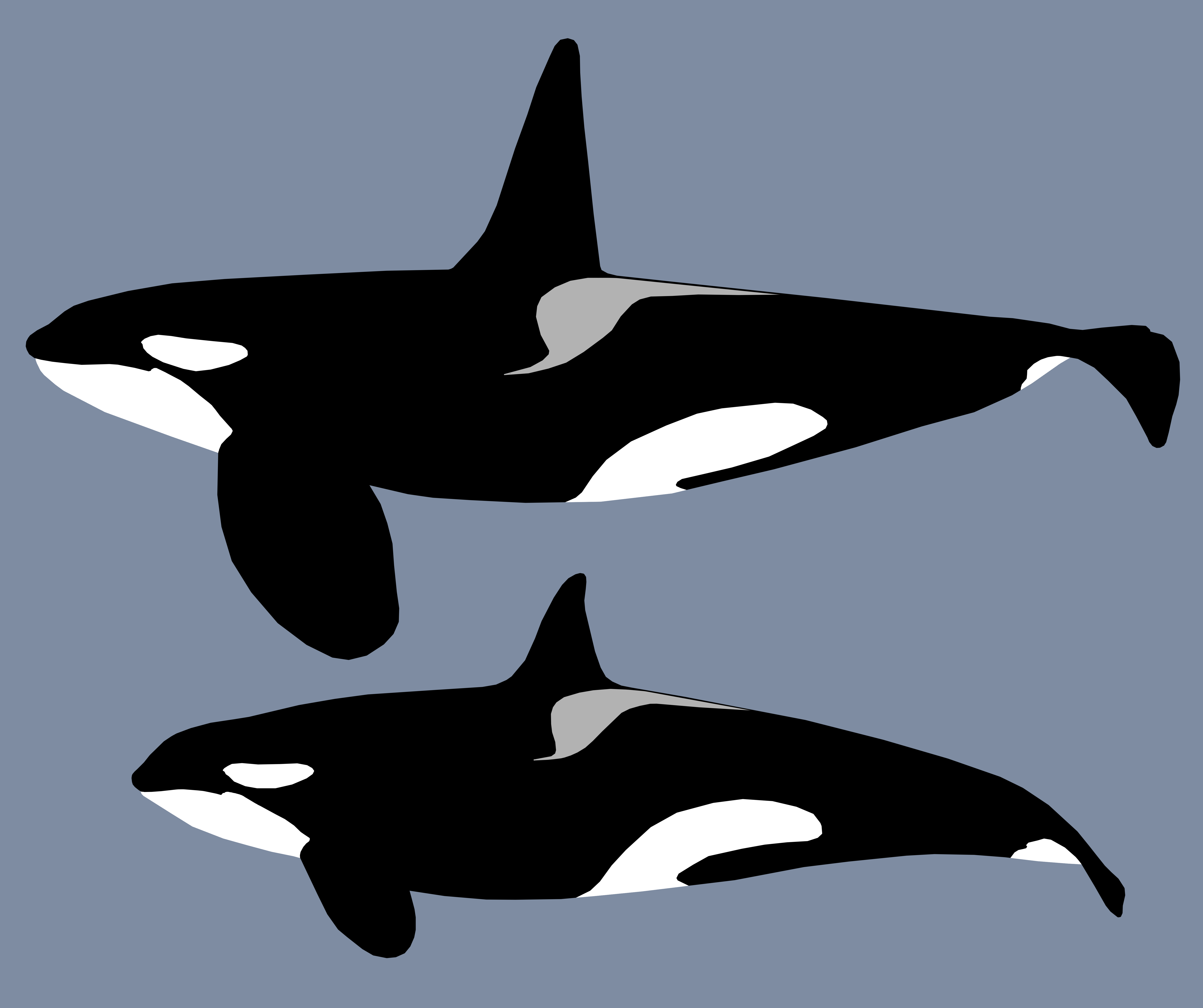 방언은 또한 유형을 구별한다. 상주 방언에는 7 ~ 17 개 (평균 = 11)의 고유 한 호출 유형이 있다. 북미 서부 해안의 일시적인 커뮤니티의 모든 구성원은 동일한 기본 방언을 사용하지만 통화 유형의 지역적 차이는 미미하다. 연구에 따르면 연안 범고래는 거주자 및 일시적인 사람들과 달리 그룹별 방언을 가지고 있다.