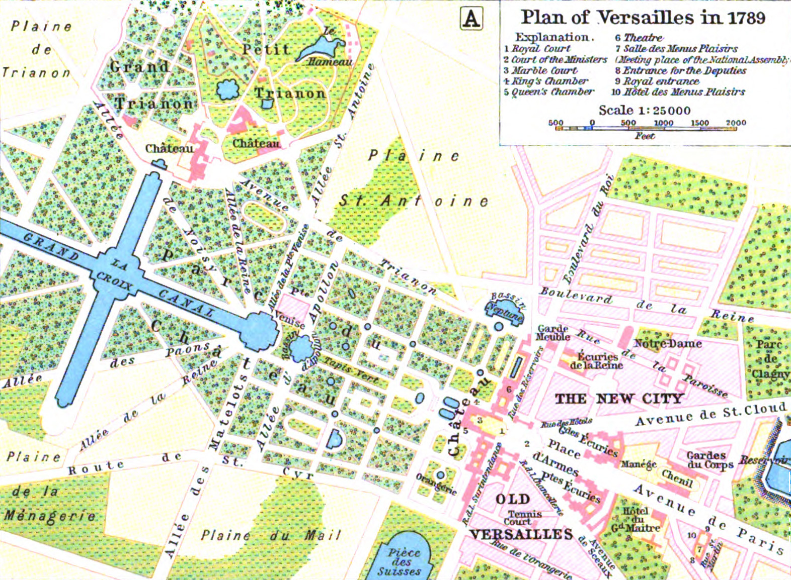 프랑스 혁명의 요람이 된 베르사유는 정치 권력의 중심지였다. 1789년 5월 5일, 삼부회가 베르사유에서 소집되었다. 제3신분 대표들은 1789년 6월 20일 테니스 코트 서약을 했고, 입헌의회는 1789년 8월 4일 봉건제를 폐지했다. 1789년 10월 5일과 6일, 파리에서 온 시민군 일부와 함께한 여성 군중이 빵값에 항의하며 베르사유 궁전을 침입하여 왕족을 파리로 이주하게 강요했다. 입헌의회는 곧이어 국왕을 따라 파리로 갔고, 베르사유는 수도로서의 역할을 상실했다. 이 격동적인 시대에 왕의 군대 주치의이기도 했던 장-프랑수아 코스트가 베르사유 시장으로 임명되었다.[11]2. 6. 19세기와 현대