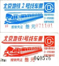 1987년 12월 28일, 기존의 두 노선은 현재의 1호선(핑궈위안역에서 푸싱먼역까지)과 2호선(명나라 성벽 자리를 따라 순환하는 현재의 노선)으로 재편됐다.[82] 이와 함께 요금도 단일 노선 이용 시 0.20위안, 환승 시 0.30위안으로 인상됐다.[82] 1988년에는 연간 승차 인원이 3억 700만 명에 달했다.[82] 1989년 6월 3일부터 4일까지 1989년 톈안먼 시위 진압 기간 동안 지하철 운행이 중단되기도 했다.[82] 1990년에는 처음으로 하루 평균 이용객 수가 100만 명을 넘어섰으며, 연간 총 승차 인원은 3억 8,100만 명에 달했다.[82] 1991년 요금이 0.50위안으로 다시 인상되자 연간 승차 인원은 3억 7,100만 명으로 소폭 감소했다.[82]