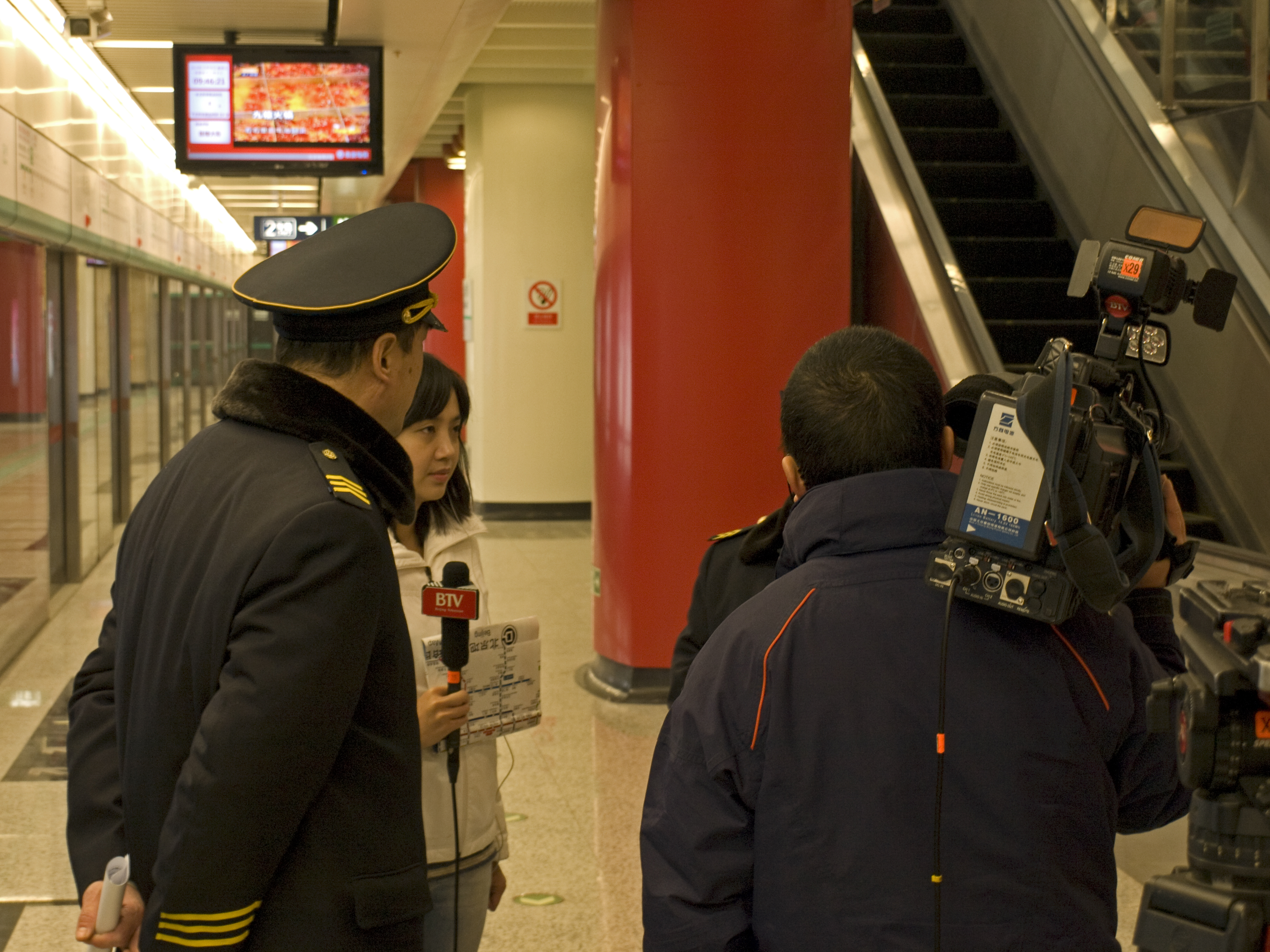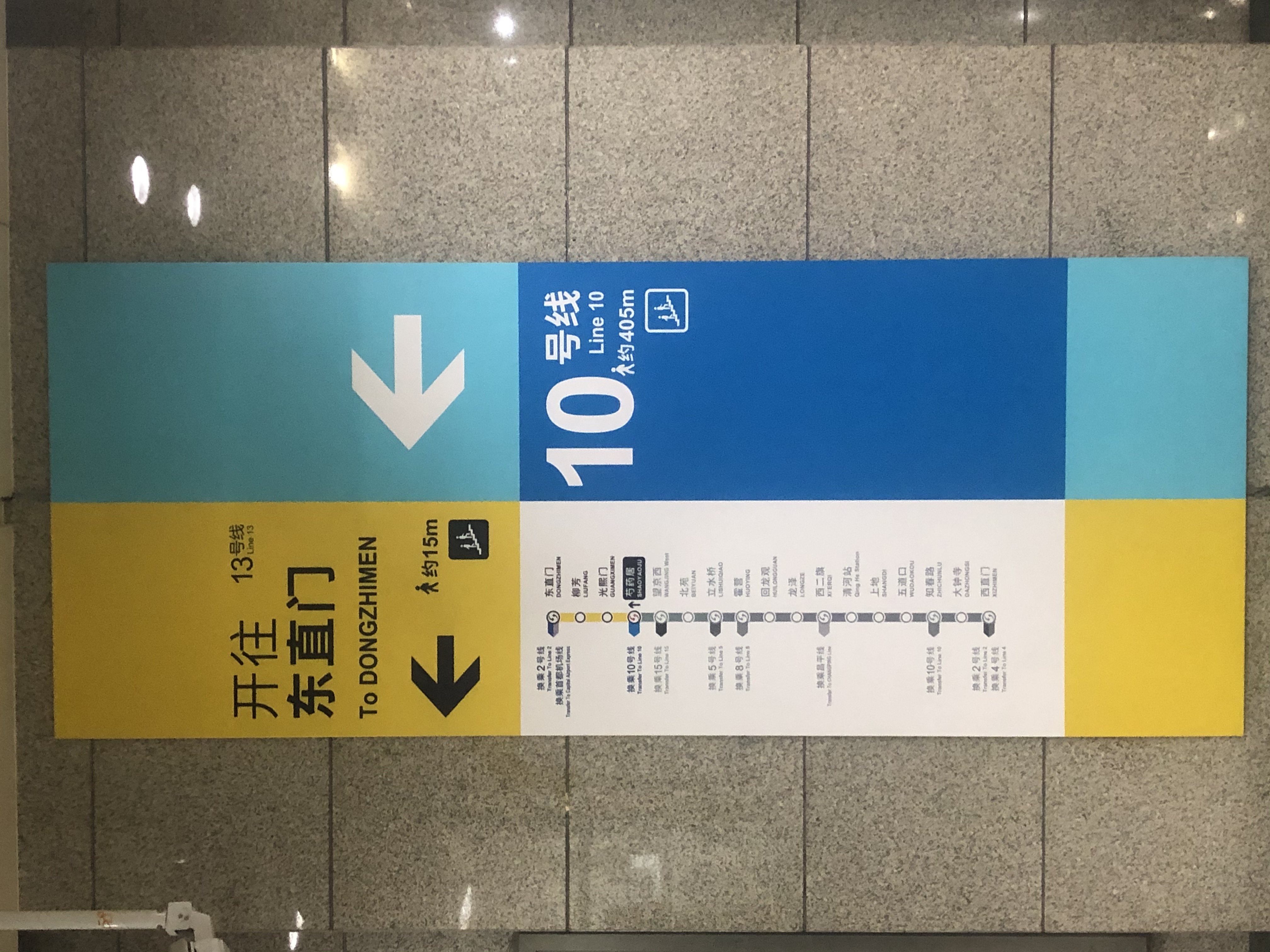 - 2013년: 5월 5일, 10호선의 마지막 구간(시쥐역-서우징마오역)과 자오먼둥역이 개통되어 총 길이 57km의 순환선이 완성되었다. 이는 세계에서 가장 긴 지하철 순환선이다.[116] 같은 날 14호선 서부 구간(장궈좡역-시쥐역)도 개통되었다.[116] 12월 28일, 8호선이 북쪽으로 주신좡역까지(후이룽관둥다제역 경유), 남쪽으로 난뤄구샹역까지(구러우다제역 경유) 연장되었다.[117][239][240] 연간 이용객 수는 32억 900만 명으로 전년 대비 30% 증가했다.[118]