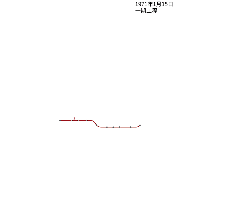 1971년 1월 15일, 베이징 기차역과 궁주펀역 사이(10.7km, 10개 역) 구간에서 일반인을 대상으로 한 시범 운행이 시작되었다. 당시 편도 요금은 0.10위안이었고, 탑승을 위해서는 직장에서 발급한 소개장이 필요했다.[80] 운행 구간은 같은 해 8월 5일 위취안루역까지(15.6km, 13개 역), 11월 7일 구청역까지(22.87km, 16개 역) 순차적으로 서쪽으로 연장되었다.[80] 1971년 한 해 동안 총 828만 명(하루 평균 28,000명)의 승객을 수송했다.[80]