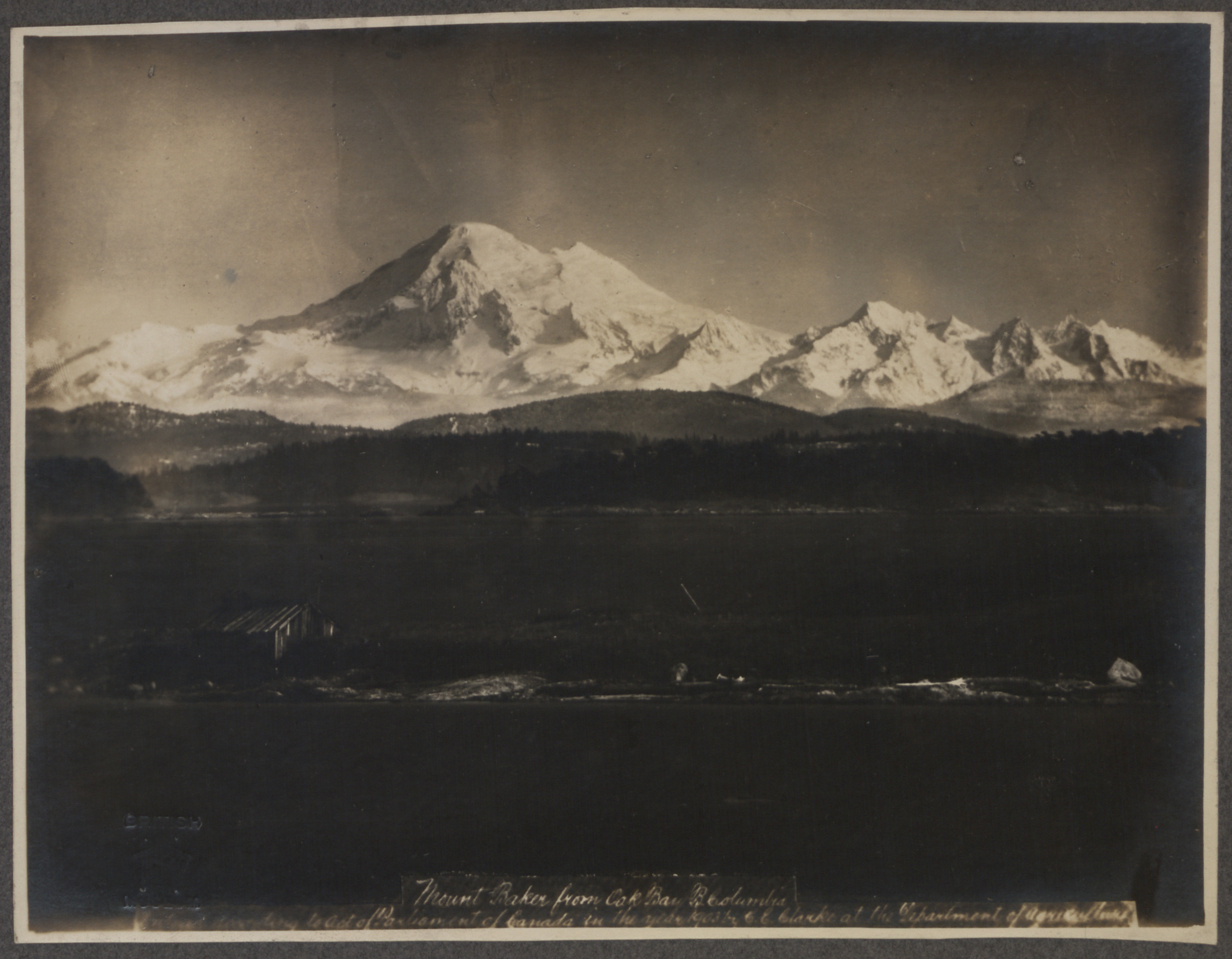 조지 밴쿠버는 1792년에 태평양 북서부 해안에 도착했다. 덩지니스 스핏에 정박해 있는 동안, 조셉 베이커가 베이커 산을 관찰했고, 밴쿠버는 자신의 일지에 베이커 산을 '베이커 산'이라고 기록했다.[10] 6년 후, 이 항해의 공식 기록이 출판되었고, 산에 대한 최초의 인쇄된 언급이 포함되었다.[10] 1850년대 중반까지 베이커 산은 퓨젯 사운드 지역을 여행하는 탐험가들과 모피 상인들에게 지평선에서 잘 알려진 특징이었다. 워싱턴 준주의 초대 주지사인 아이작 I. 스티븐스는 1853년에 베이커 산에 대해 "북부 캐스케이드 산맥에서 가장 높고 눈에 띄는 봉우리 중 하나"라고 기록했다.[10]