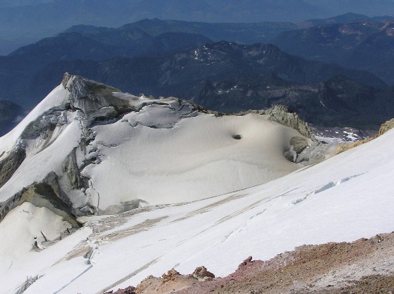 용암의 고립된 능선과 수열 변성된 암석, 특히 셔먼 크레이터 지역에서 빙하 사이에 노출되어 있으며, 화산의 상단 측면은 가파르고 울창한 식생으로 덮여 있다. 베이커 산과 블랙 뷰트의 화산암은 비화산암 기반 위에 놓여 있다.