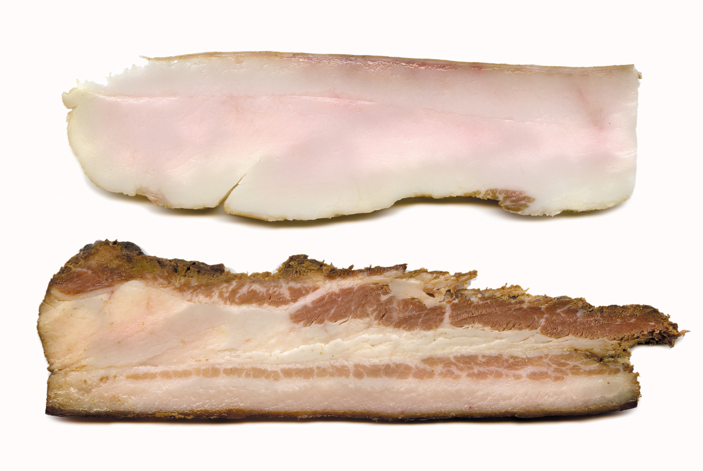 - '''돼지 뺨 베이컨''': 돼지 뺨을 숙성, 훈제한 것이다.[14]