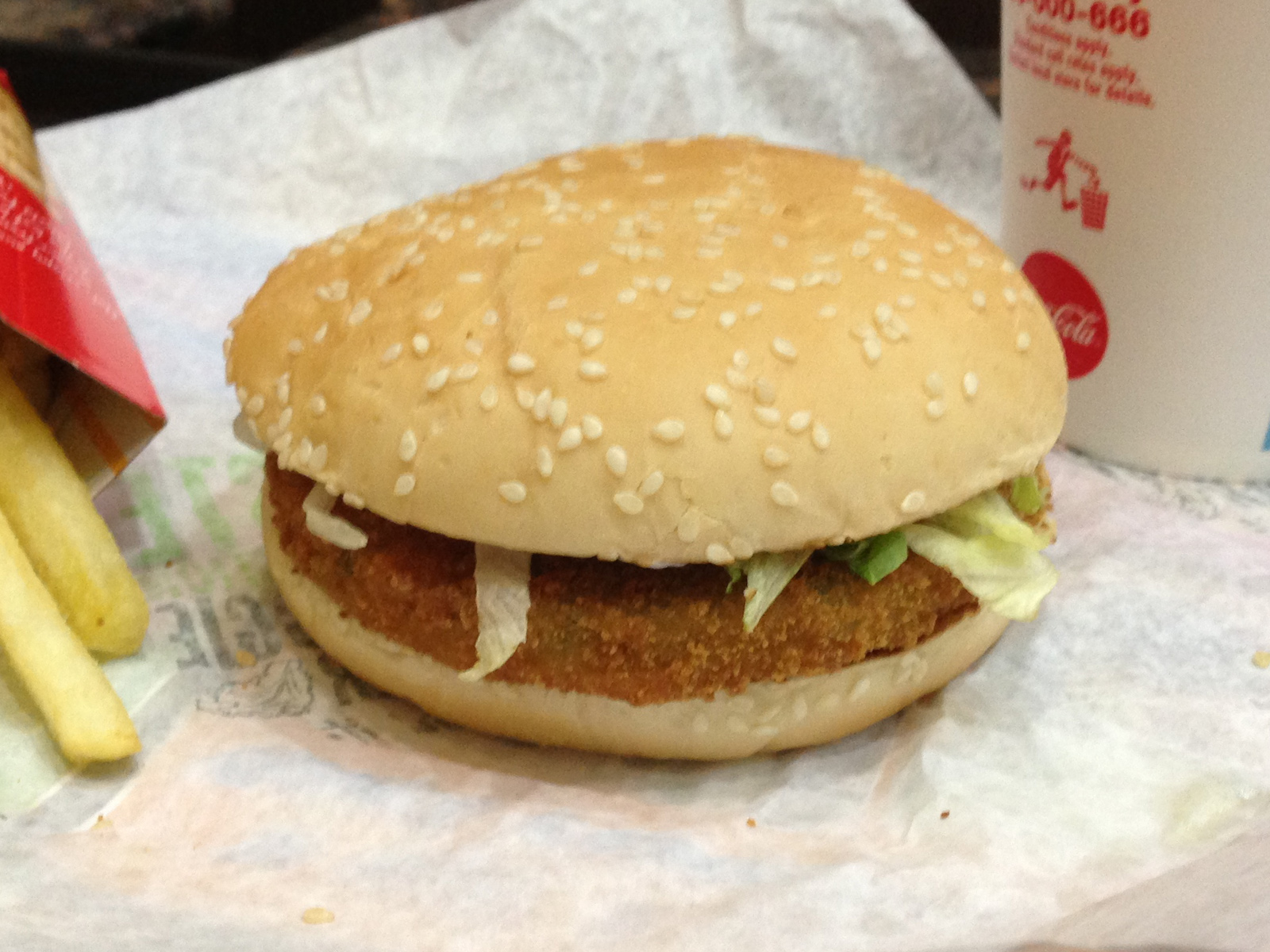 인도 | 맥베지 (튀긴 빵가루를 입힌 다진 채소 패티, 양상추, 케첩을 통밀, 참깨 또는 포카치아 빵에 넣음) |