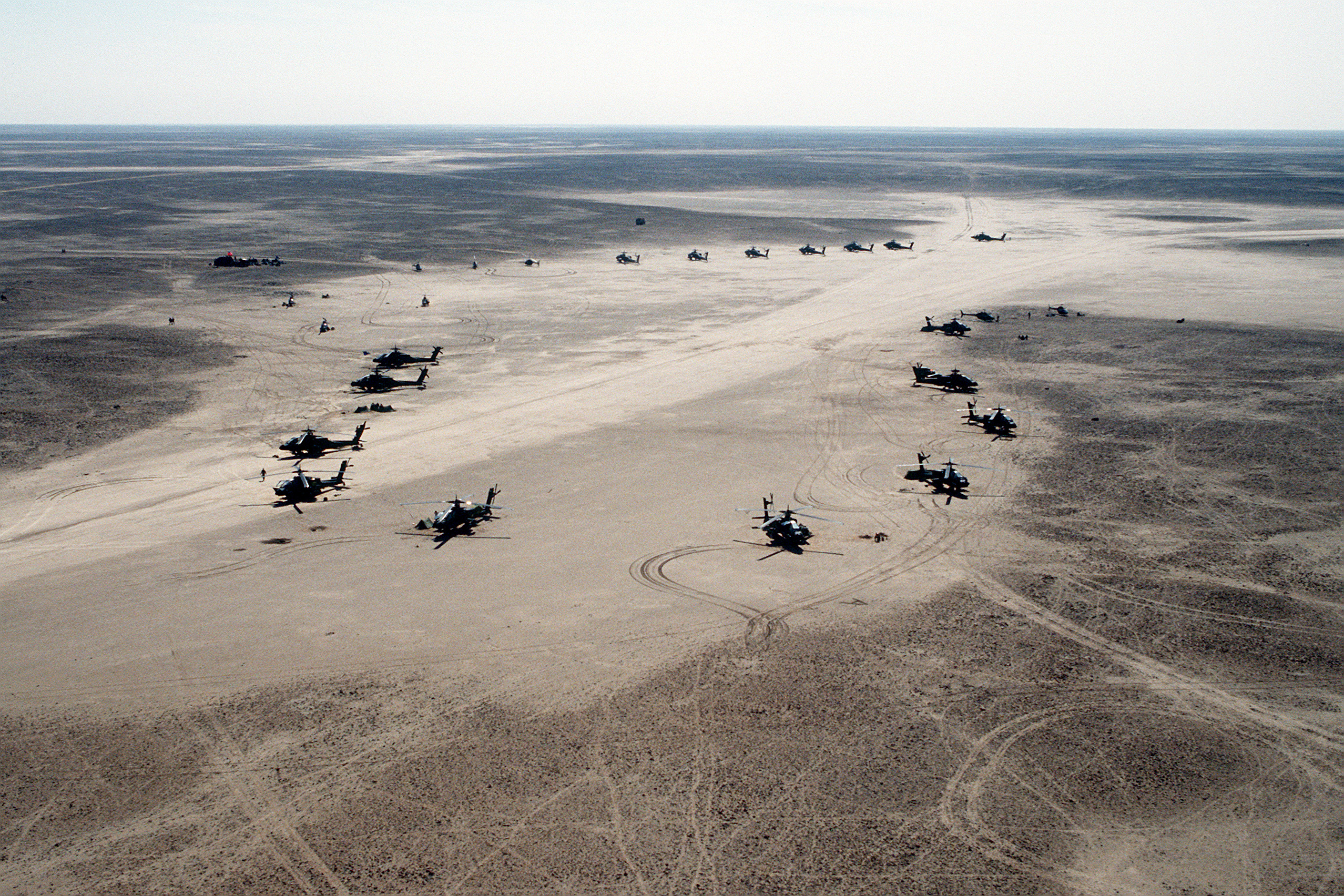 육군 공격 헬기들은 또한 미 공군의 A-10A, F-16A/C, EF-111A, EC-130H 컴퍼스 콜, F-4G 팬텀 II "와일드 위즐", E-8 조인트 스타즈와 같은 근접 항공 지원 및 지원 항공기와 함께 작전을 수행했다.[38]