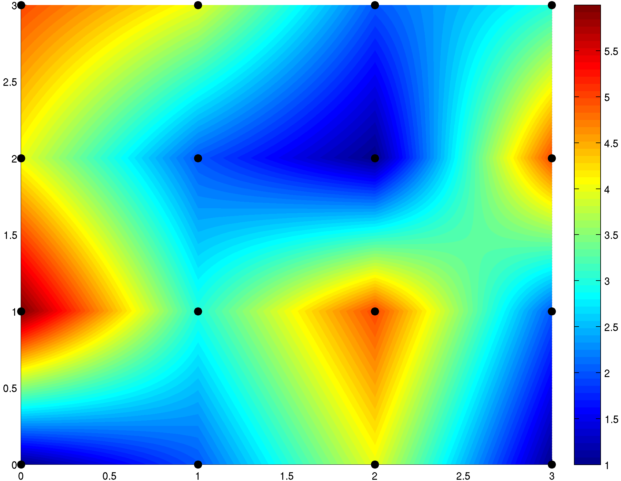 보간법을 이용하면 와 같이 주어진 점들 사이의 값에 대한 함수 값을 추정할 수 있다.