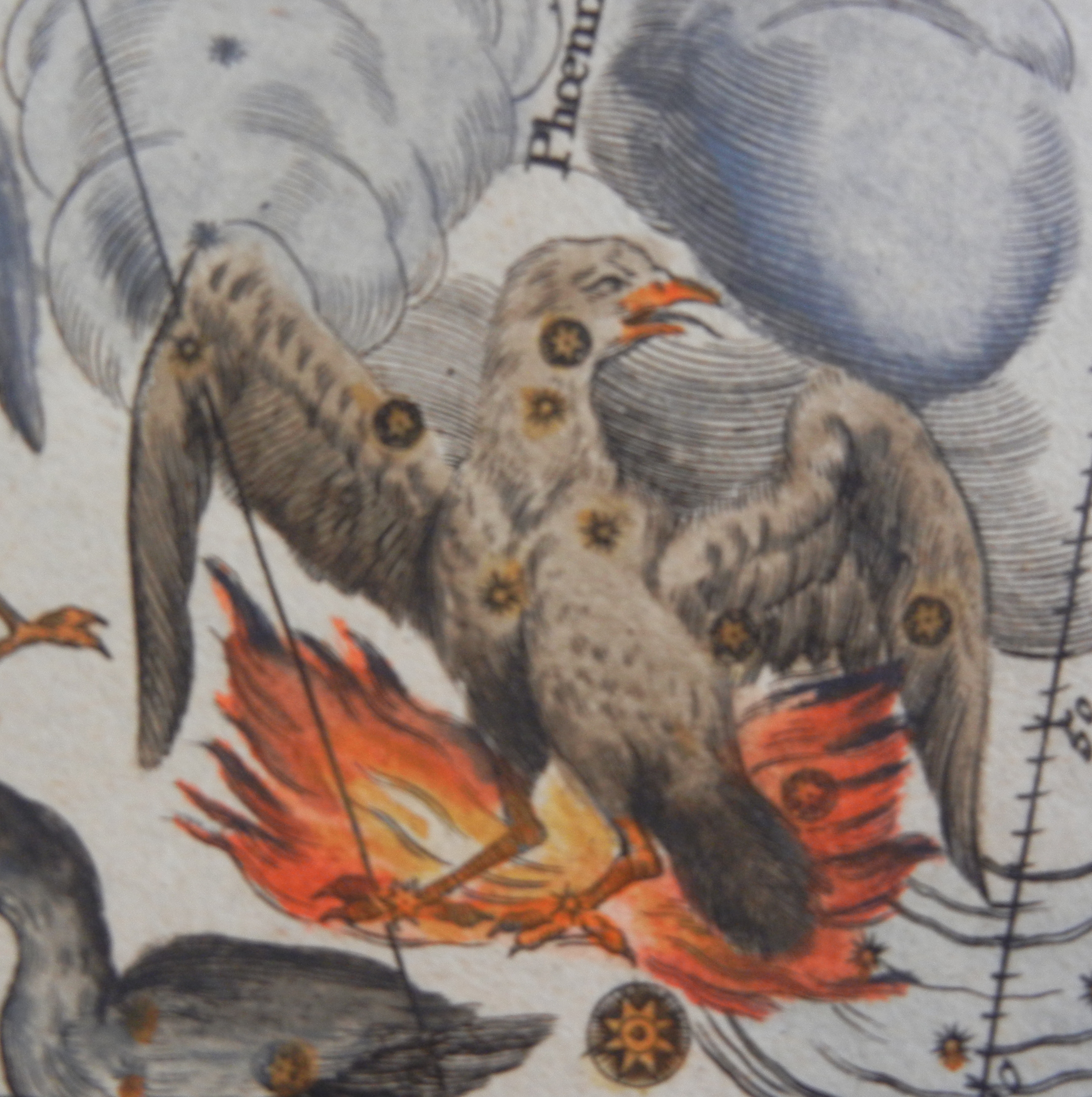 봉황자리는 페트루스 플란시우스가 피터 디르크손 케이저와 프레데릭 드 호트만의 관측을 바탕으로 정립한 12개의 별자리 중 가장 큰 별자리였다. 1597년(또는 1598년) 암스테르담에서 플란시우스가 요도쿠스 혼디우스와 함께 발행한 지름 35cm의 천구에 처음 등장했으며, 1603년 요한 바이어의 ''우라노메트리아''에 처음으로 천체 지도에 묘사되었다.[1] 드 호트만은 같은 해에 'Den voghel Fenicx'(새 봉황)라는 네덜란드 이름으로 남쪽 별 목록에 포함시켰는데,[2] 이는 고전 신화의 불사조를 상징했다.[3]