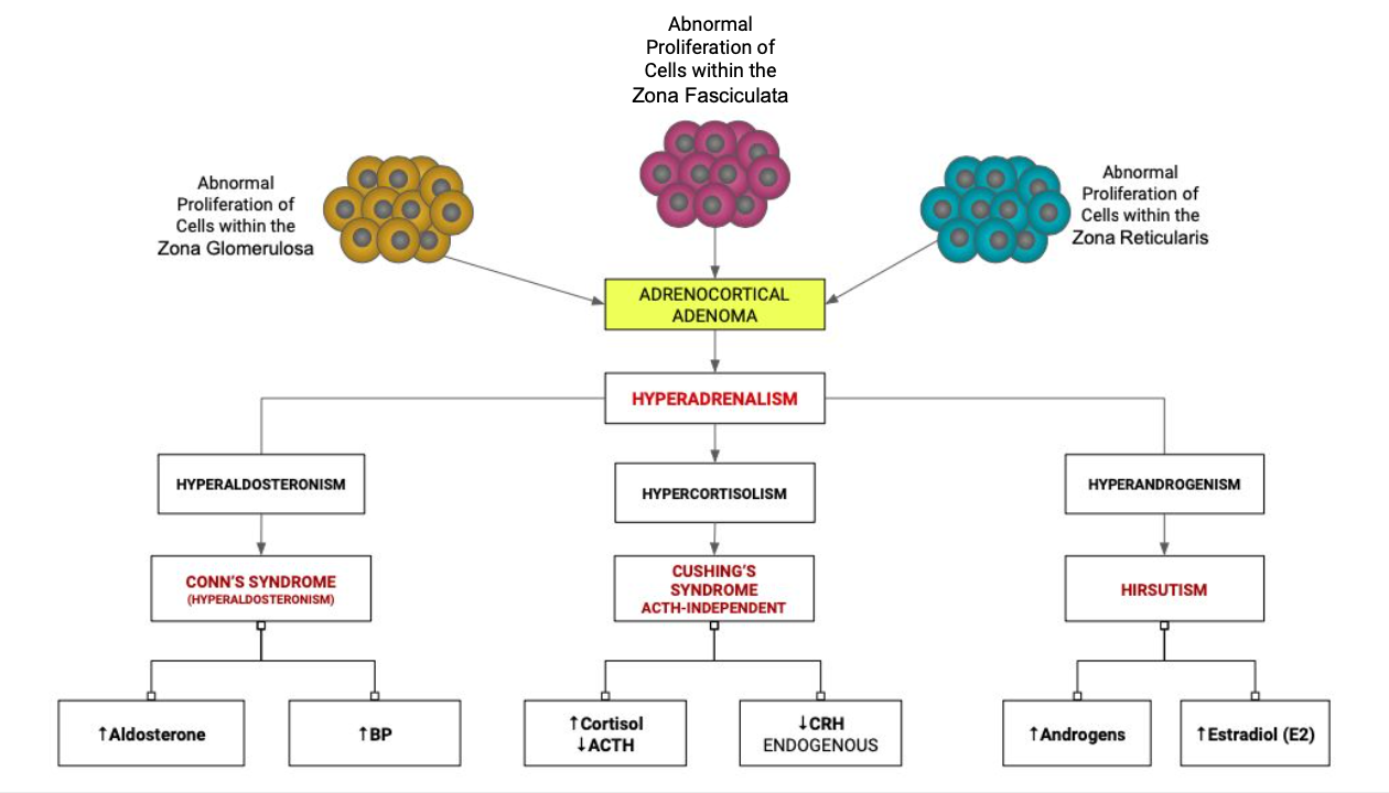 - 무기질 코르티코이드: 구상대에서 생성되며, 주로 알도스테론이 이에 해당한다.