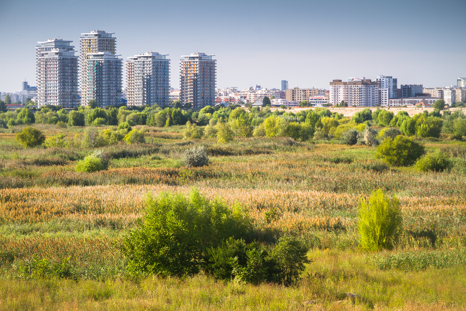 부쿠레슈티는 루마니아 평야 중앙, 한때 블러시에이 숲으로 덮여 있던 지역에 자리 잡고 있으며, 숲이 사라진 후 비옥한 평야가 되었다.[162] 이 도시는 다뉴브 강의 지류인 아르게슈 강으로 흘러드는 드므보비차 강 강둑에 위치해 있다.