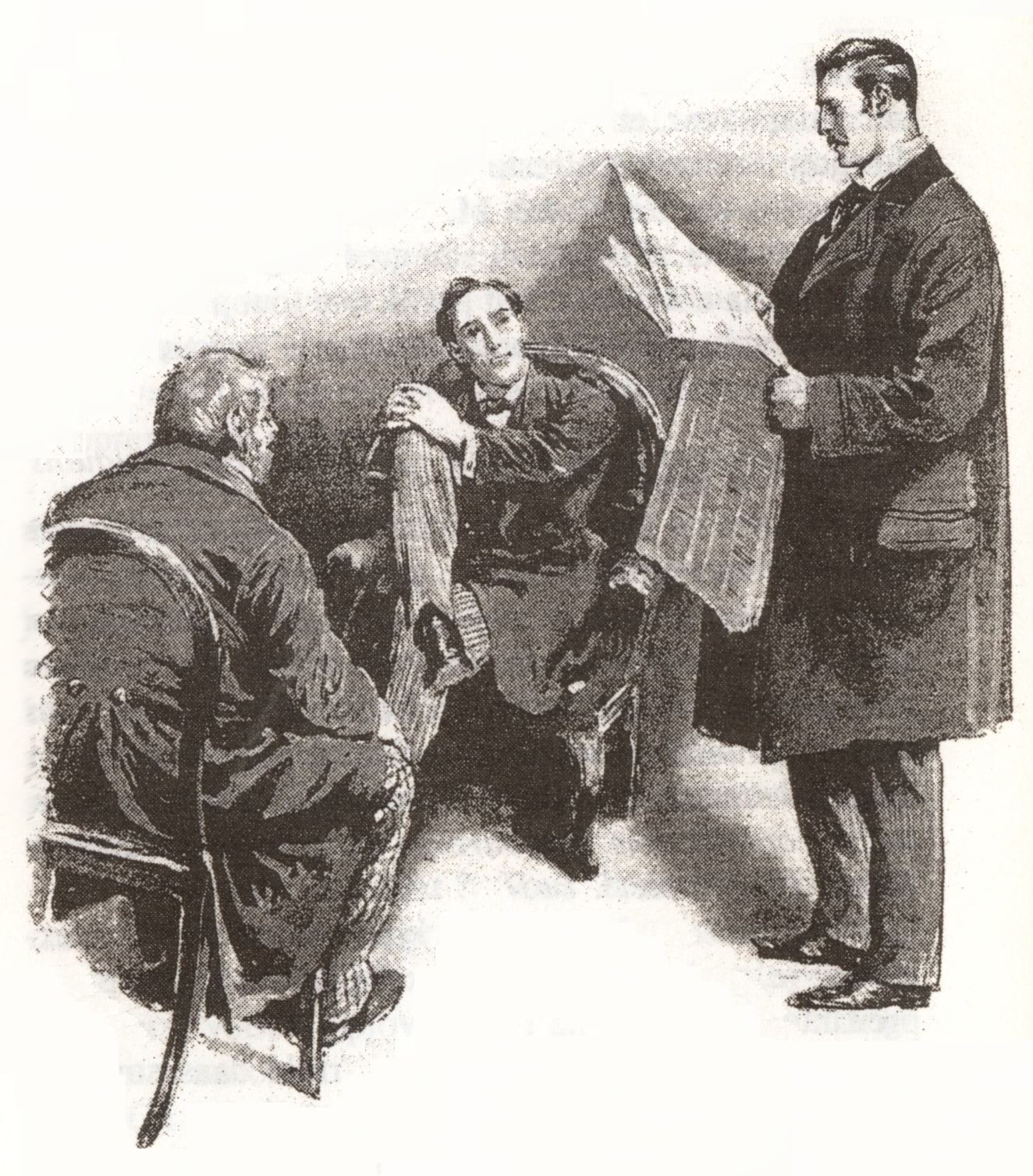 윌슨, 홈즈, 신문을 읽는 왓슨 - 시드니 파제트 그림, 『스트랜드 매거진』에 실린 삽화