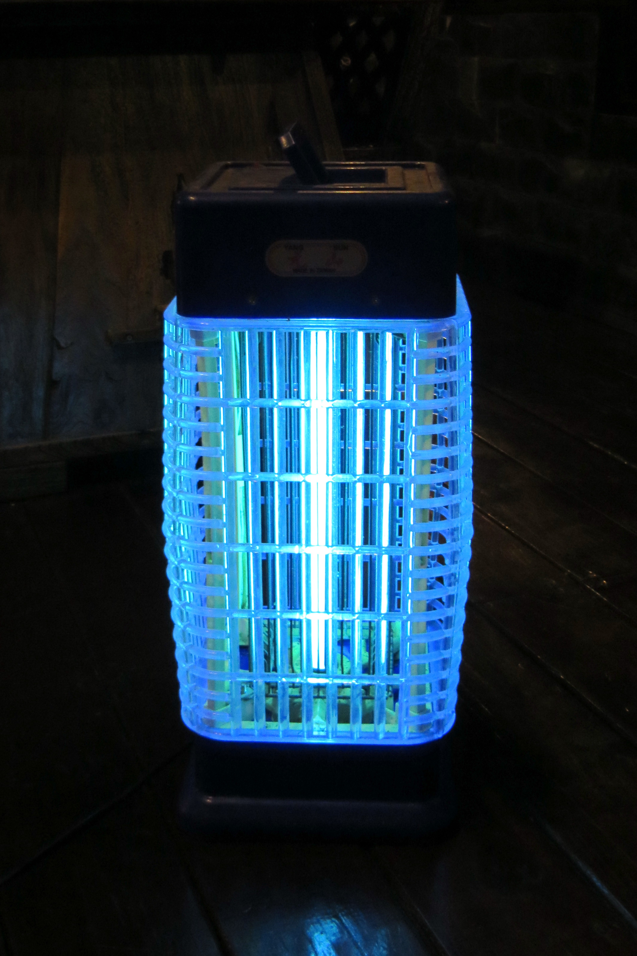 벌레 잡는 기계는 자외선에 유인되는 곤충의 특성을 이용하여 해충을 포획하는 장치이다. 곤충은 자외선을 보고 장치로 다가와 감전된다. 이 전구는 필터 블랙라이트와 동일한 UV-A 방출 형광체 혼합물을 사용하지만, 가시광선 출력을 억제할 필요가 없으므로 보라색 필터 재료를 사용하지 않는다. 일반 유리는 가시적인 수은 방출 스펙트럼을 덜 차단하여 육안으로 볼 때 옅은 청자색으로 보인다. 이 램프는 일부 북미 조명 카탈로그에서 "블랙라이트" 또는 "BL"로 지정된다.[13] "BLB" 튜브[13] 램프처럼 낮은 가시광선 출력이 필요한 용도에는 적합하지 않다.