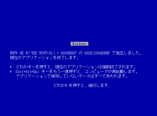일본어판 Windows 3.x & Windows 9x의 경우 블루스크린도 일본어로 표시된다.