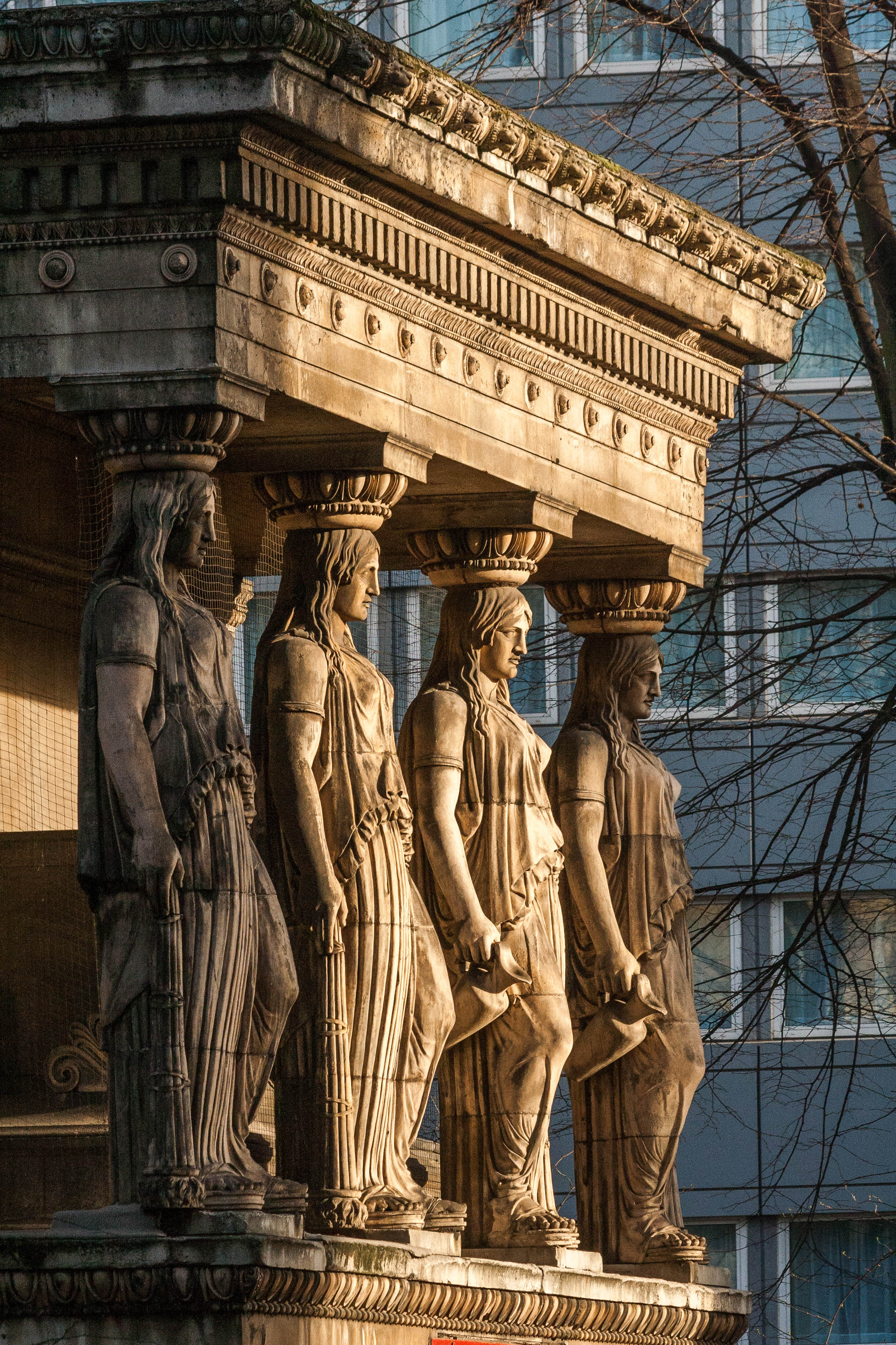 - 세인트 판크라스 뉴 교회는 유스턴 역 근처에 있다. 이 교회는 1822년에 완공되었으며, 에레크테이온의 "처녀의 현관"을 기반으로 한 북쪽과 남쪽에 있는 여인상으로 유명하다.