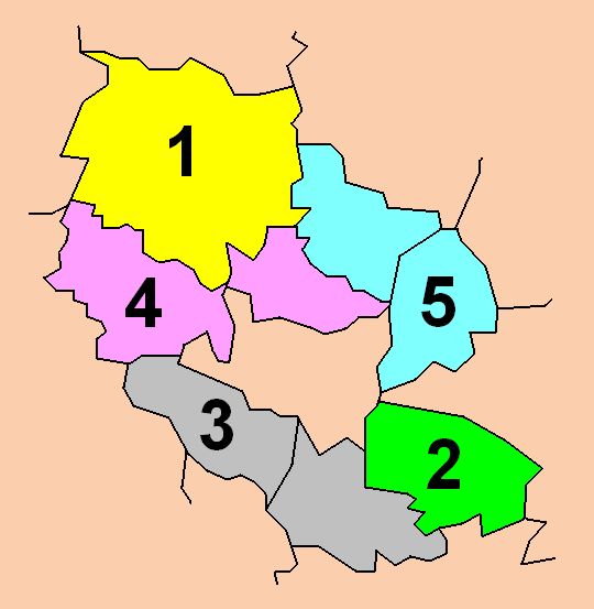 의회 의원은 5개의 선거구에서 선출되며, 임기는 4년이다. 각 선거구는 번호와 지역 설명으로 구분되며, 공식적인 명칭은 없다.