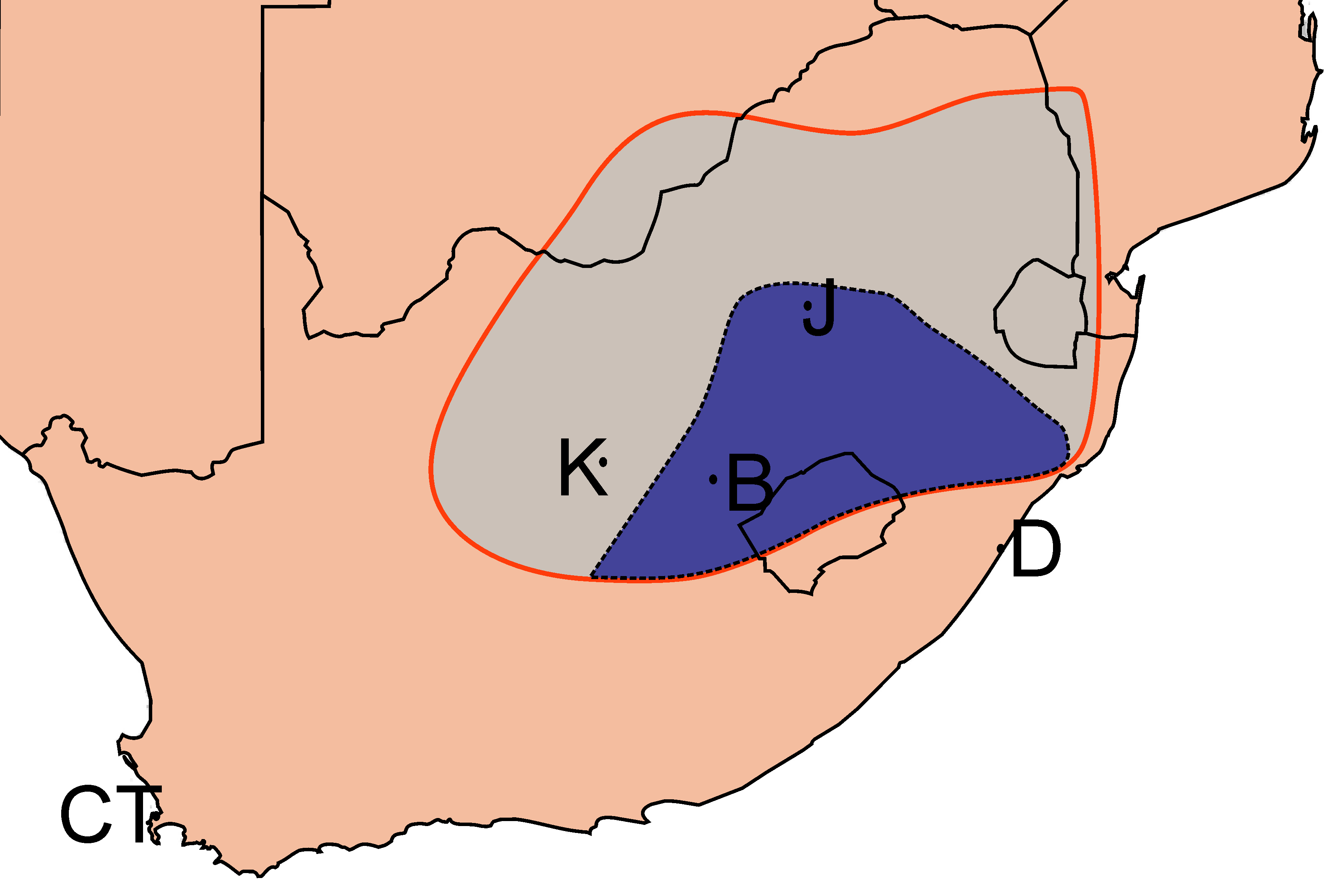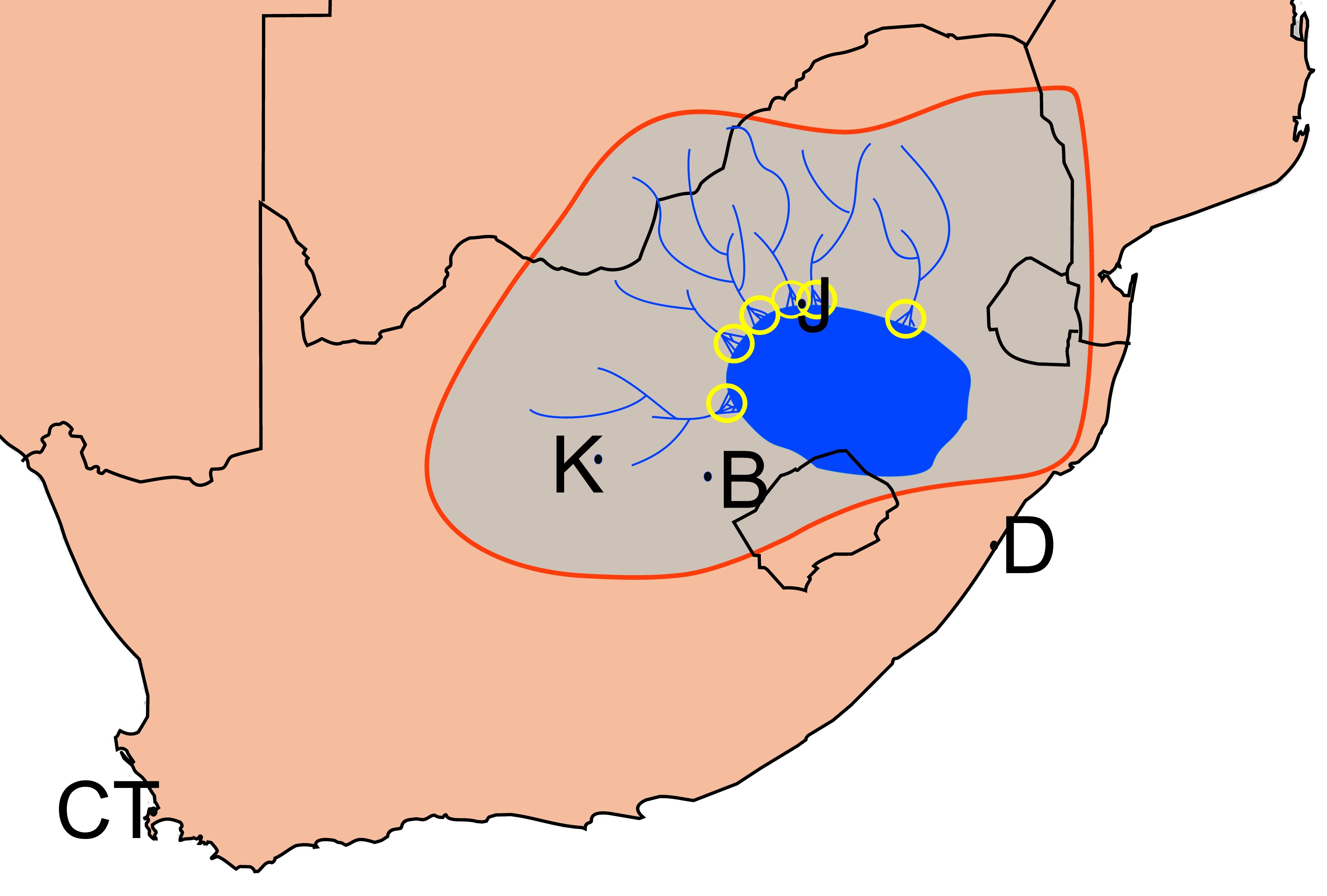 위치 | 남아프리카 공화국, 노스웨스트 주, 하우텡 주, 음푸말랑가 주 |