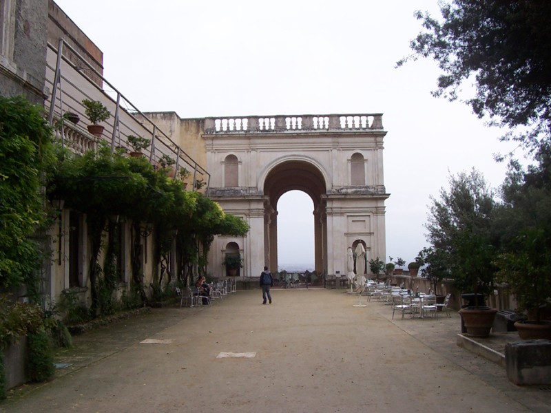 빌라와 정원 사이에 있는 200미터 길이의 넓은 테라스인 '''비알로네'''는 정원과 그 너머의 시골 풍경을 파노라마처럼 감상할 수 있게 1568년에서 1569년 사이에 건설되었다. 추기경들은 불꽃놀이, 게임, 구경거리, 축제 등을 위해 이 공간을 사용했다. 원래는 빌라 정면 공간을 제외하고 두 줄의 느릅나무가 그늘을 드리워 시야를 확보했다. 테라스는 한쪽 끝에는 유로파 분수가 있고, 다른 쪽 끝에는 '''체나콜로'''라고 불리는 개선문 형태의 거대한 로지아와 벨베데레가 있는데, 이 구조물은 여름에는 그늘을 제공하고, 풍경을 조망할 수 있는 전망대를 제공했다. 원래 내부는 스투코 장식, 도금 및 프레스코화로 장식될 예정이었지만, 결국 완성되지 못했다.