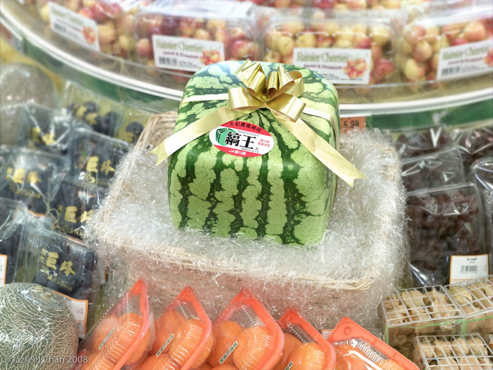 이 수박은 상자 안에서 재배되어 상자의 모양을 따르며, 주로 부유층이나 유행에 민감한 소비자들의 관심을 끈다. 2001년 일본에서는 개당 10000JPY(당시 약 83USD)에 판매되었는데, 이는 일반 수박 가격의 2~3배에 달하는 금액이었다.[3][4][5] 2014년 캐나다에서는 일부가 200USD에 판매되기도 했다.[6]